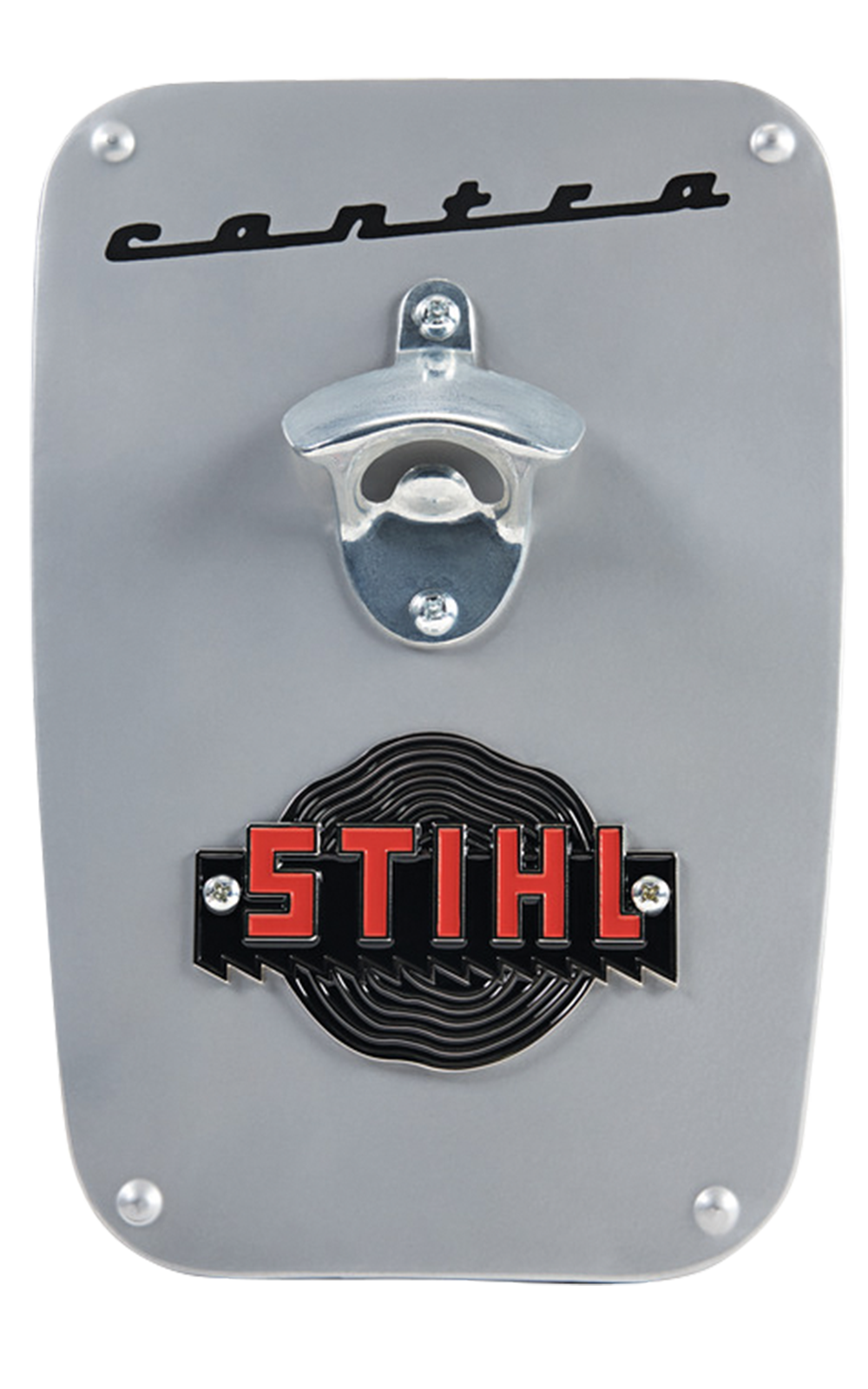 Der hochwertige, gusseiserne Flaschenöffner darf in keiner Werkstatt fehlenMit hochwertigem STIHL Emblem.So kann jede Flasche nach getaner Arbeit sti(h)lvoll geöffnet werden