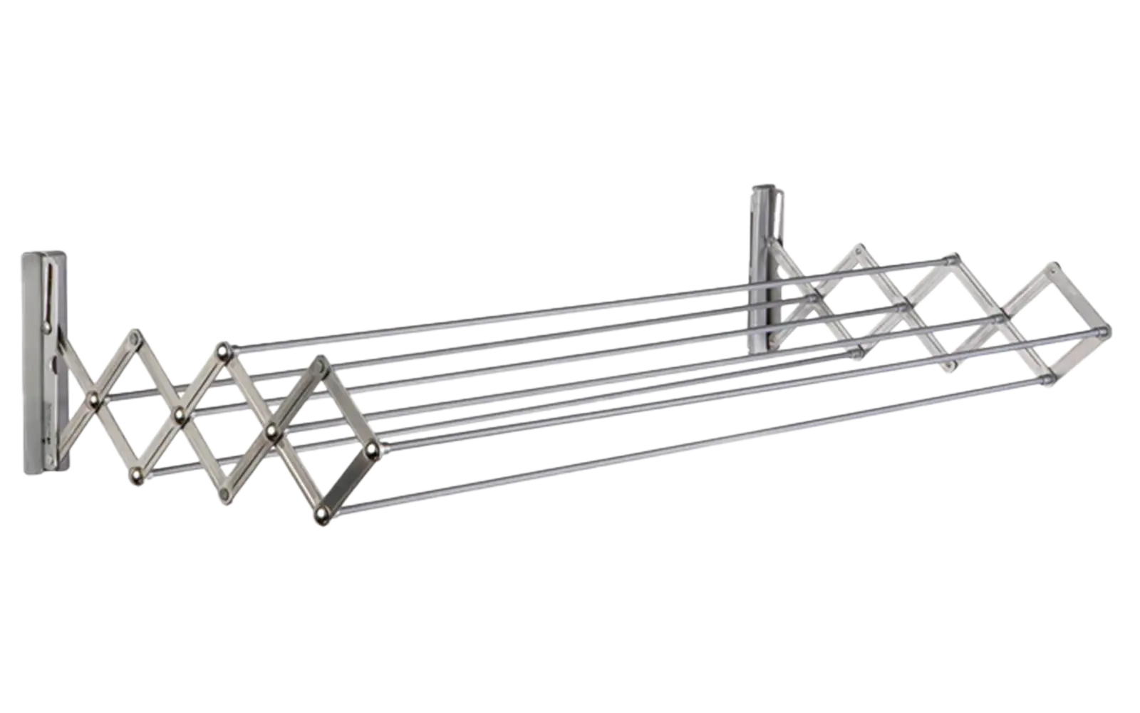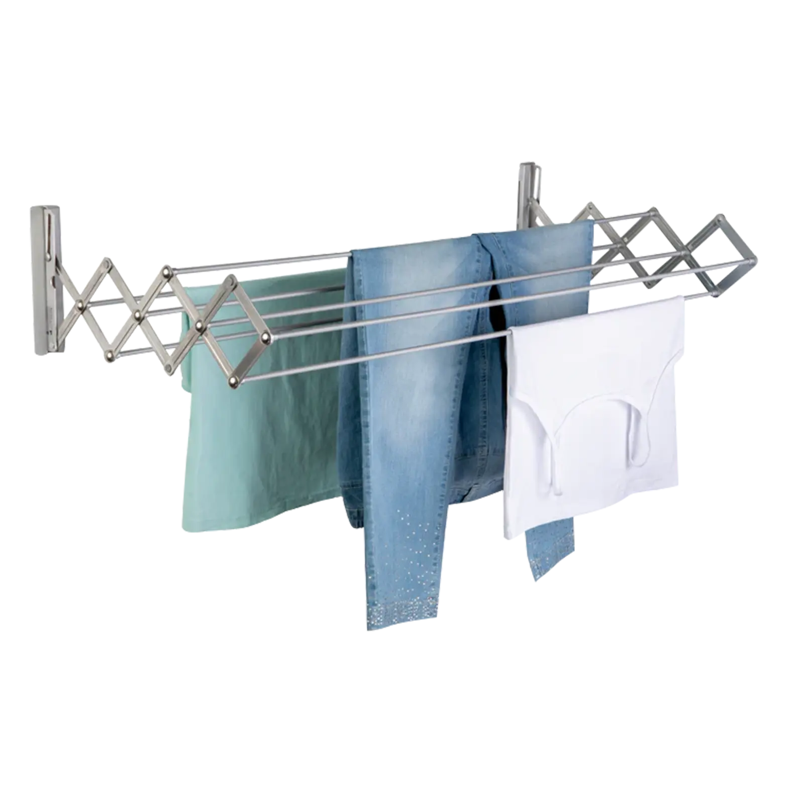 Mit 6,6 m Trockenlänge. Länge: ca.99,5 cm und Bohrabstände: ca. Breite: 93,3cm und Höhe: 12,4cm.- Enorme Tragkraft (20 KG)- Für innen und außen- Kunststoffummantelte Stahlstäbe silber- Alu Seitenteile- Platzsparend in Ruheposition- Witterungsbeständig