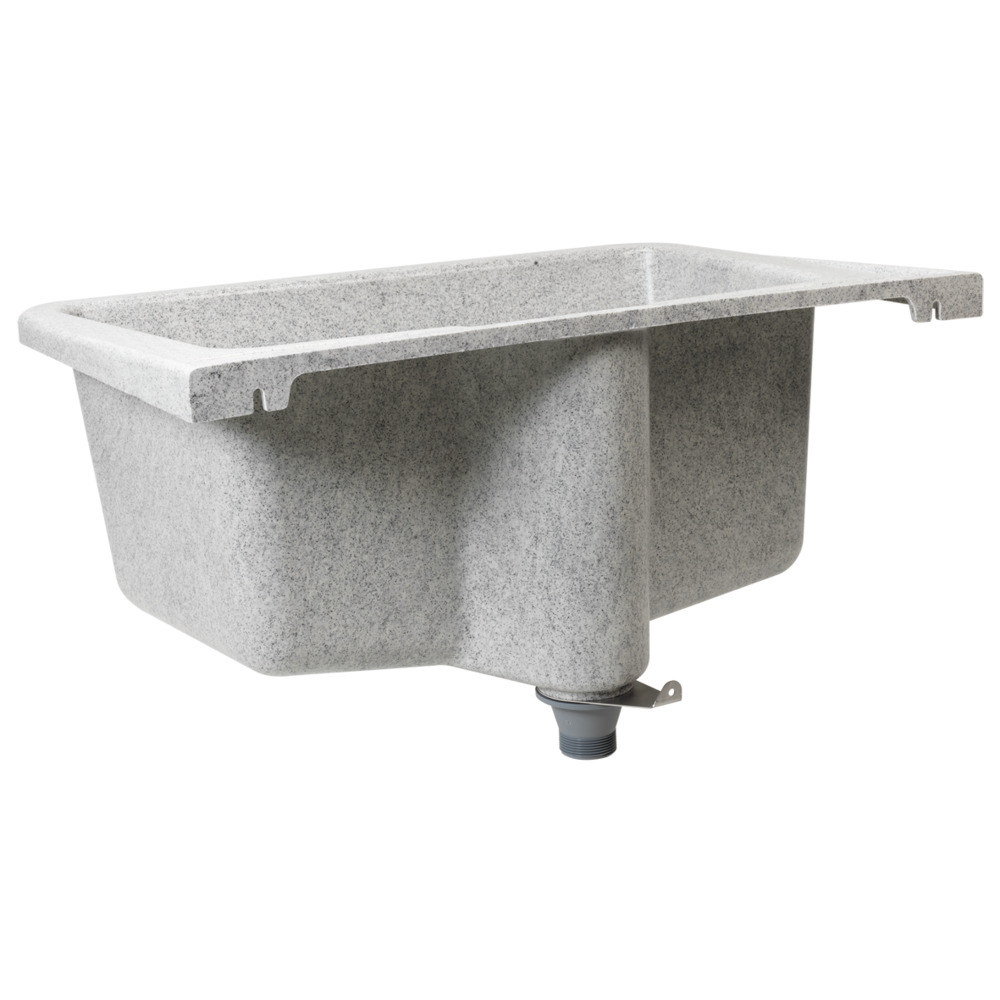 Der Waschtrog besteht aus glasfaserverstärktem Kunststoff, daher weitgehend schlag- sowie kratzfest und äußerst strapazierfähig. Komplett mit Standrohrventil 6/4“ und Aufhängung. Farbe grau