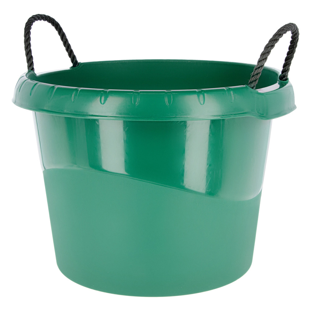 Mit bis zu 45 Liter Fassungsvermögen ist dieser Trog für verschiedenste Anwendungsbereiche auf der Weide oder im Stall einsetzbar. Er besteht aus stabilem, nahezu unzerbrechlichem und schlagzähem Kunststoff. Ausgestattet mit 2 reißfesten Griffen. Farbe: grün. Inhalt: 45 L.