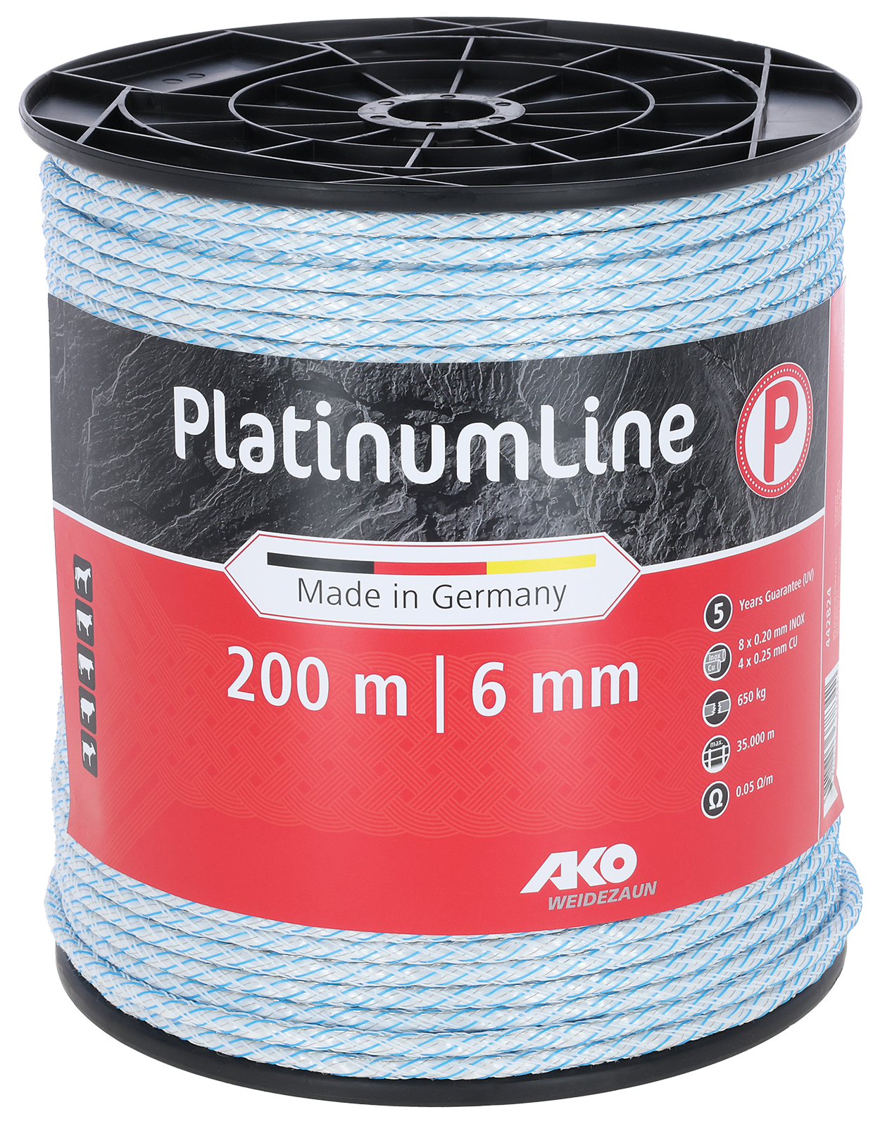 Produktinformationen "Weidezaunseil Platinum weiß/blau 6 mm / 200 m"