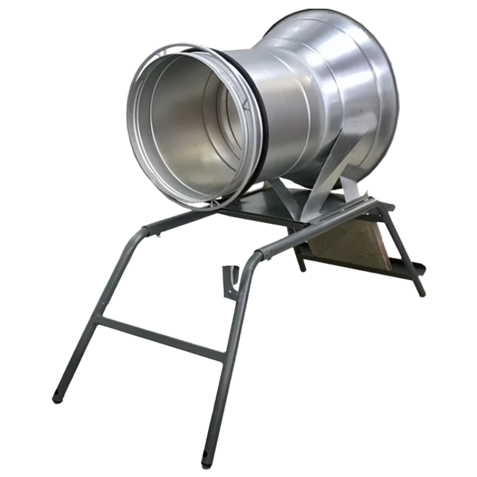 45 cm Rohrdurchmesser mit Einziehtrichter aus verzinktem Blech, vormontiert mit stabiler Konsole, Bremsgummi und stabiler Metall-Abstreifring.