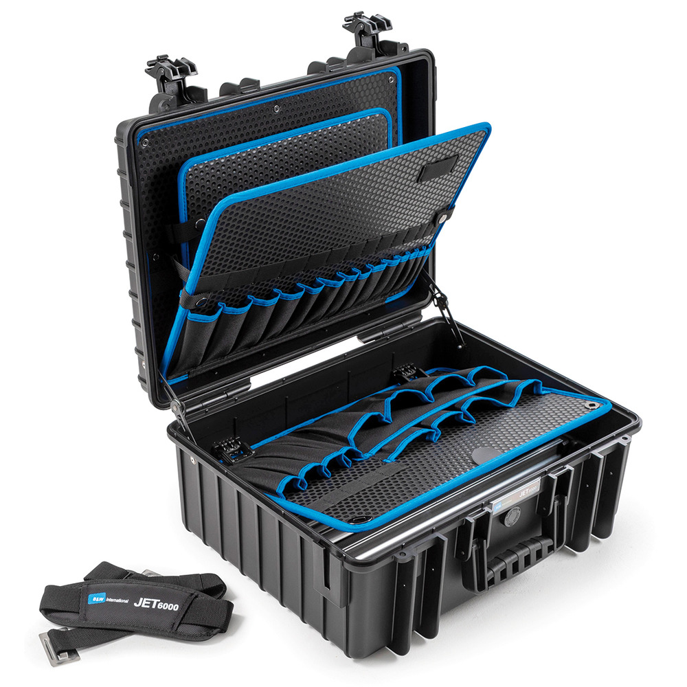 Der King der Jet Serie !Extrem robust, schlagfest und vor Staub und Feuchtigkeit geschützt- das zeichnet die Jet Serie aus. Mit einem Koffergehäuse aus ultra widerstandsfähigem Polypropylen (PP) - schützt das Koffer Innenleben zuverlässig, selbst unter extremsten Bedingungen! Glühende Hitze bis zu 80°C oder auch Eiseskälte bis -30°C können dem JET 6000 nichts anhaben. Mit insgesamt 109 tool pockets und tool loops ist bei jedem Außeneinsatz alles wichtige Werkzeug dabei. Für noch mehr Stauraum sorgt die großzügig ausgelegte Bodenschale, die durch das patentierte Alu-Trennsteg System ja nach Bedarf individuell unterteilt werden kann.Highlights: