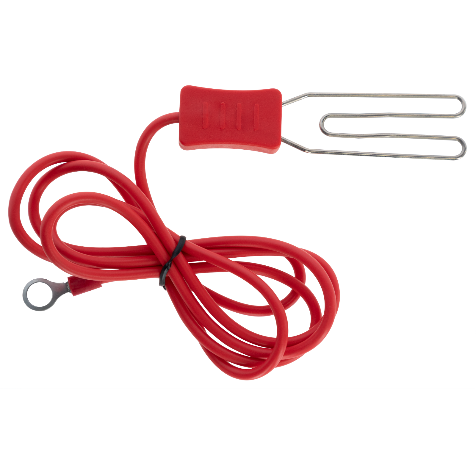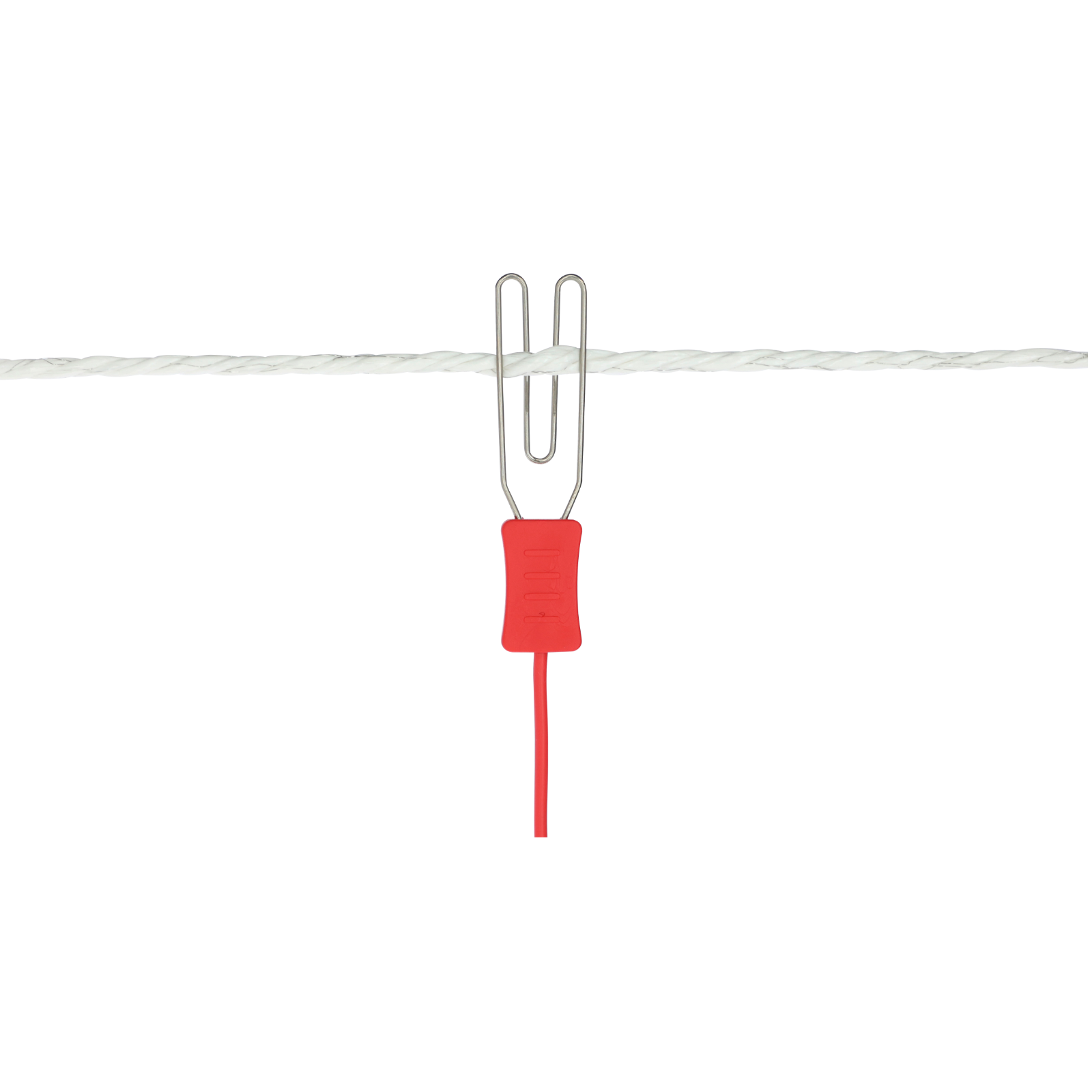 Verbindet das Weidezaungerät mit dem Weidezaundraht oder der Weidezaunlitze. Kabellänge 125 cm. Herzanschlussklemme. Öse M8. Anschlussteile aus Edelstahl.