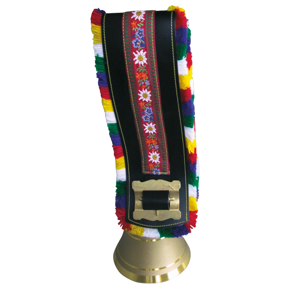 Edle Gussglocke mit14 cm Maulöffnung. Sehr schönes Zier-Lederband mit zusätzlicher Zierbande.