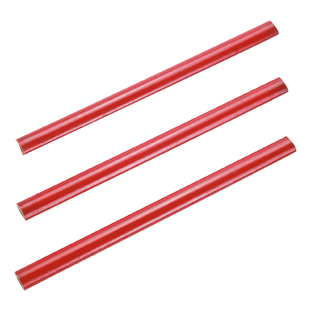 Set bestehend aus drei Zimmermannsbleistifte mit je 180 mm Länge. Farbe Rot, ungespitzt, mit HB Mine. Ideal für Handwerk, Baustelle und Haushalt.