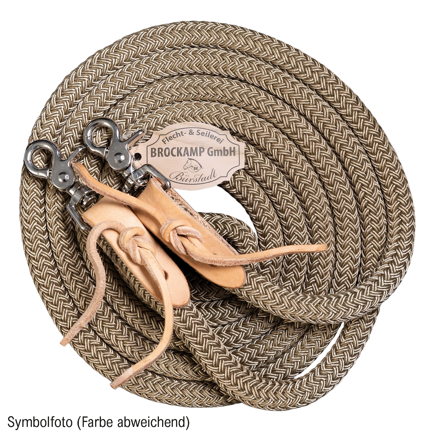Zügel geschlossen, 3 m Länge, mit Lederadapter, Messingkarabiner