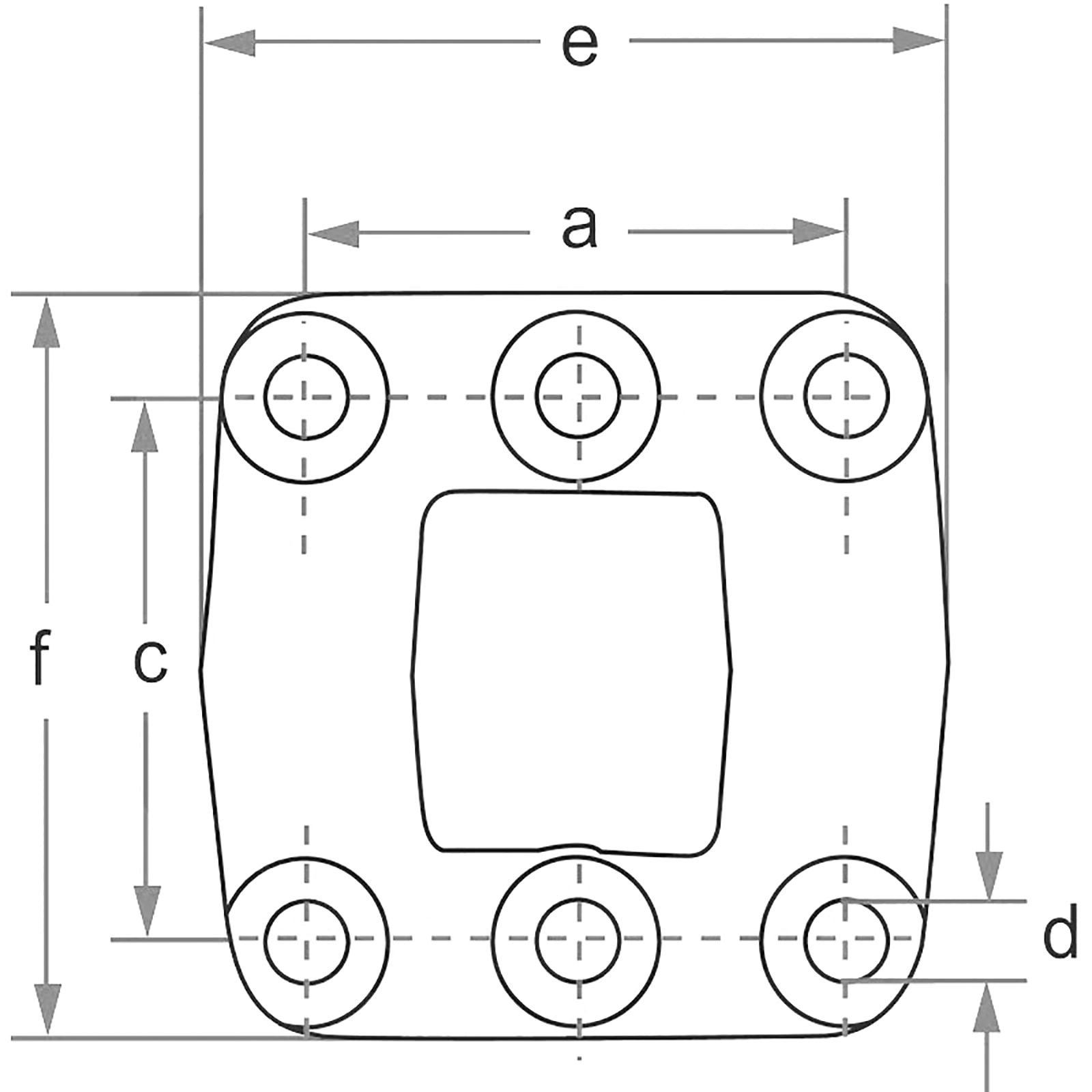 6 Lochflansch mit Lochmaß/Lochbild 100x110mmBohrungsdurchmesser: ø 17mmStützlast: 2500kgD-Wert: 89,3kn