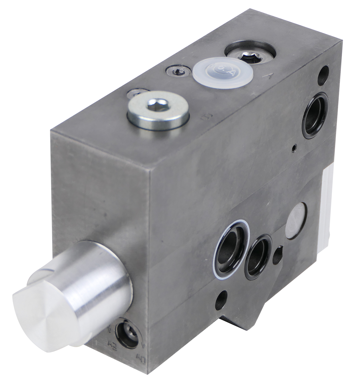 Die Verbraucheranschlüsse A und B befinden sich oben und unten am Gehäuse. Das Gerät hat eine Rasterstellung in der Position Heben, die mit hydraulisch-automatischer Endabschaltung bestückt ist. Schaltet man über die Senkposition weiter, wird die gerastete Schwimmstellung eingeschaltet, die hydraulisch nicht entrastet wird (Verbraucheranschlüsse A und B miteinander verbunden zum Rücklauf).