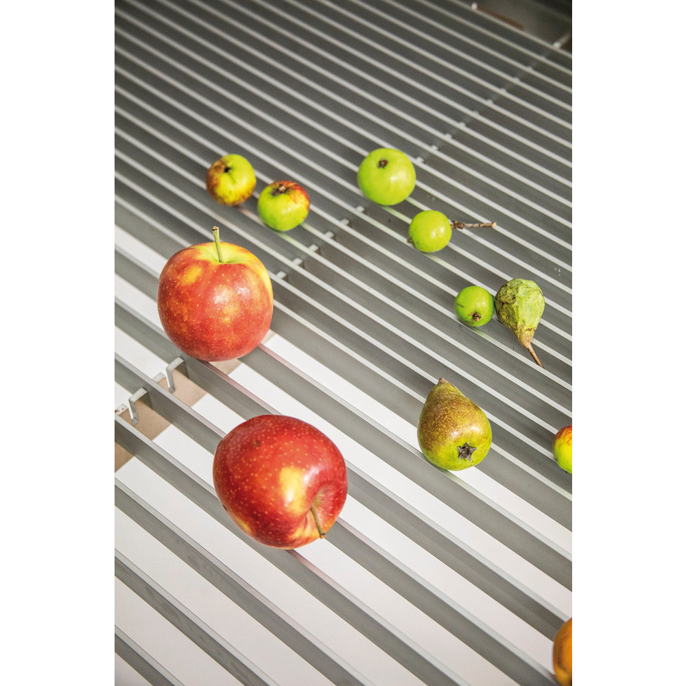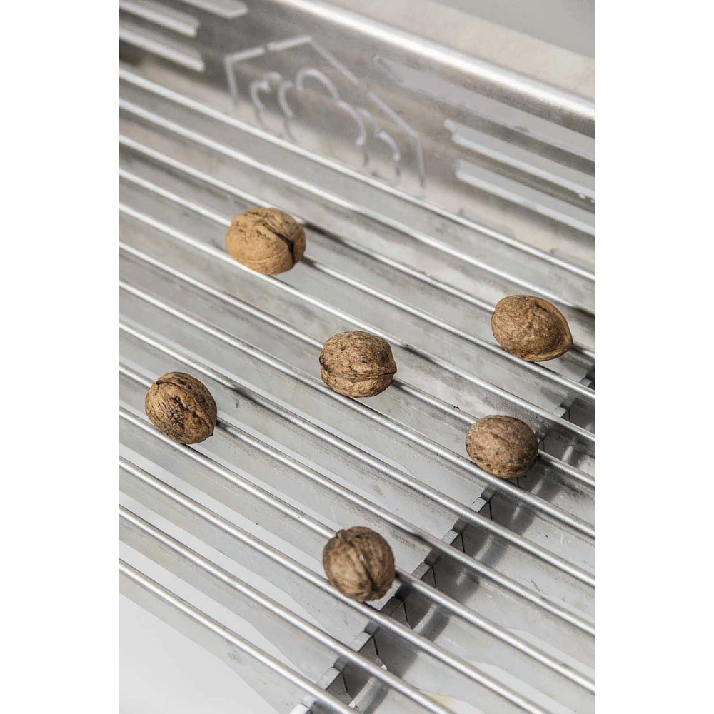 Extension set suitable for the aluminum sorting table consisting of 18 additional struts for sorting nuts and small fruits (e.g. cider pears). Gap distance variable: from 12mm (28mm/44mm). Anodized aluminum, food safe.