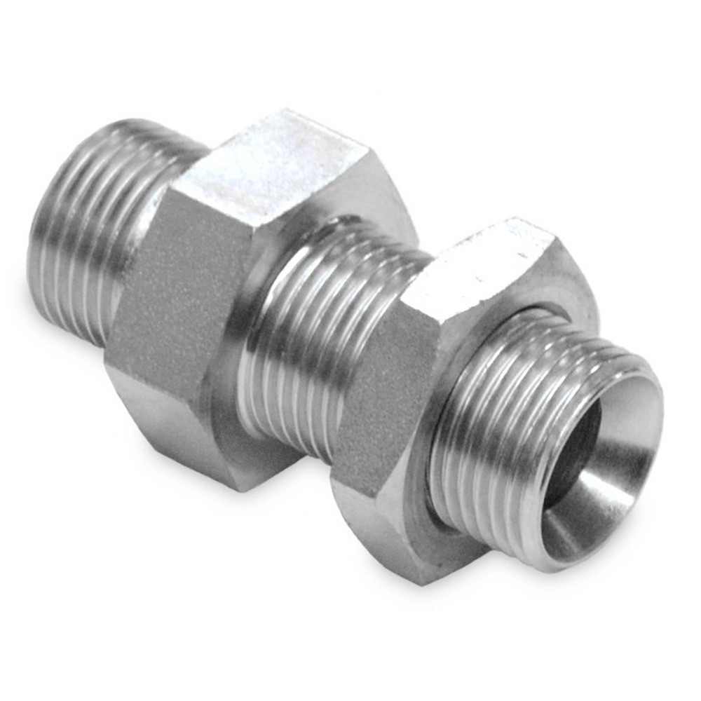 Straight bulkhead adapter with inch external thread and 60 internal cone.