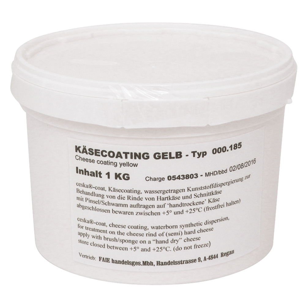 Plastic gel for coating hard and semi-hard cheese to keep germs away during ripening. Color yellow, 1 kg bucket.