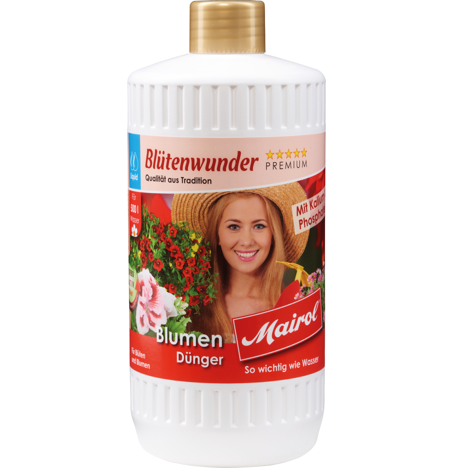 Mairol Blütenwunder vitalizes flowering plants indoors, on balconies and terraces as well as in the garden. It boosts the willingness to flower, fruit formation and accelerates ripening. With the special nutrient composition, the plants develop lush and long-lasting colorful flowers.