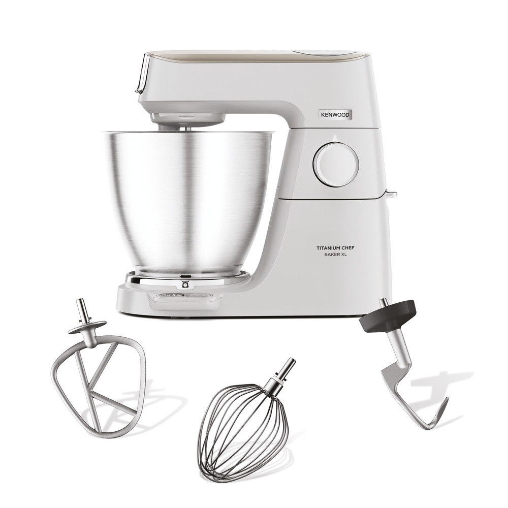 - 3 mixing elements: K-hook and dough hook (coated) and stainless steel balloon whisk