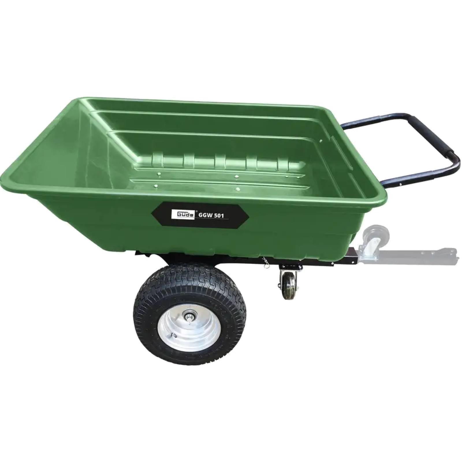 With its large wheels and sturdy steel frame, it can be easily maneuvered over uneven terrain. The garden shed offers enough space for all the garden tools and materials you need for your work. ~It is made of high-quality materials and is therefore very durable, and it is also very easy to clean and maintain. ~Thanks to its folding drawbar, it can also be converted into a trailer for a lawn tractor, for example, in no time. ~In addition The garden cart can be securely attached to the lawn tractor using a trailer hitch.