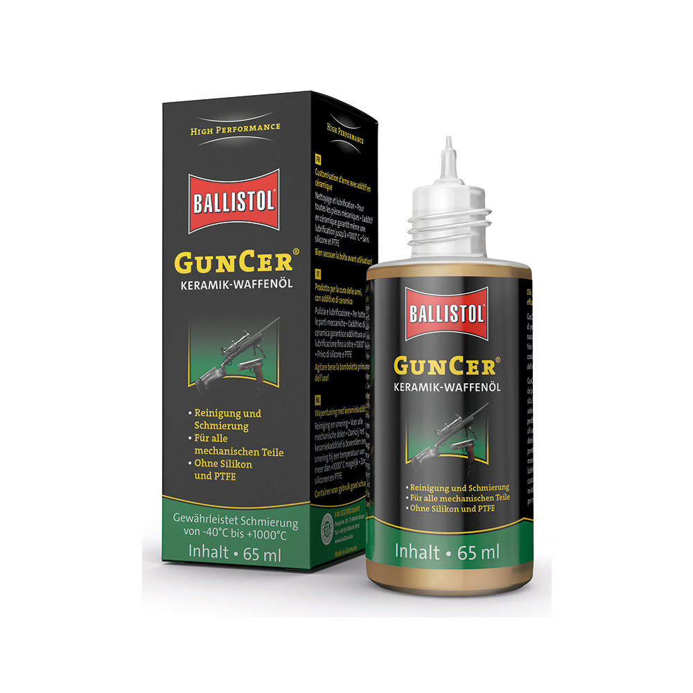 GunCer does not become resinous and does not contain any additives of silicone or PTFE. No acidic residues are formed under heat. It is suitable for all types of long guns, handguns and knives.