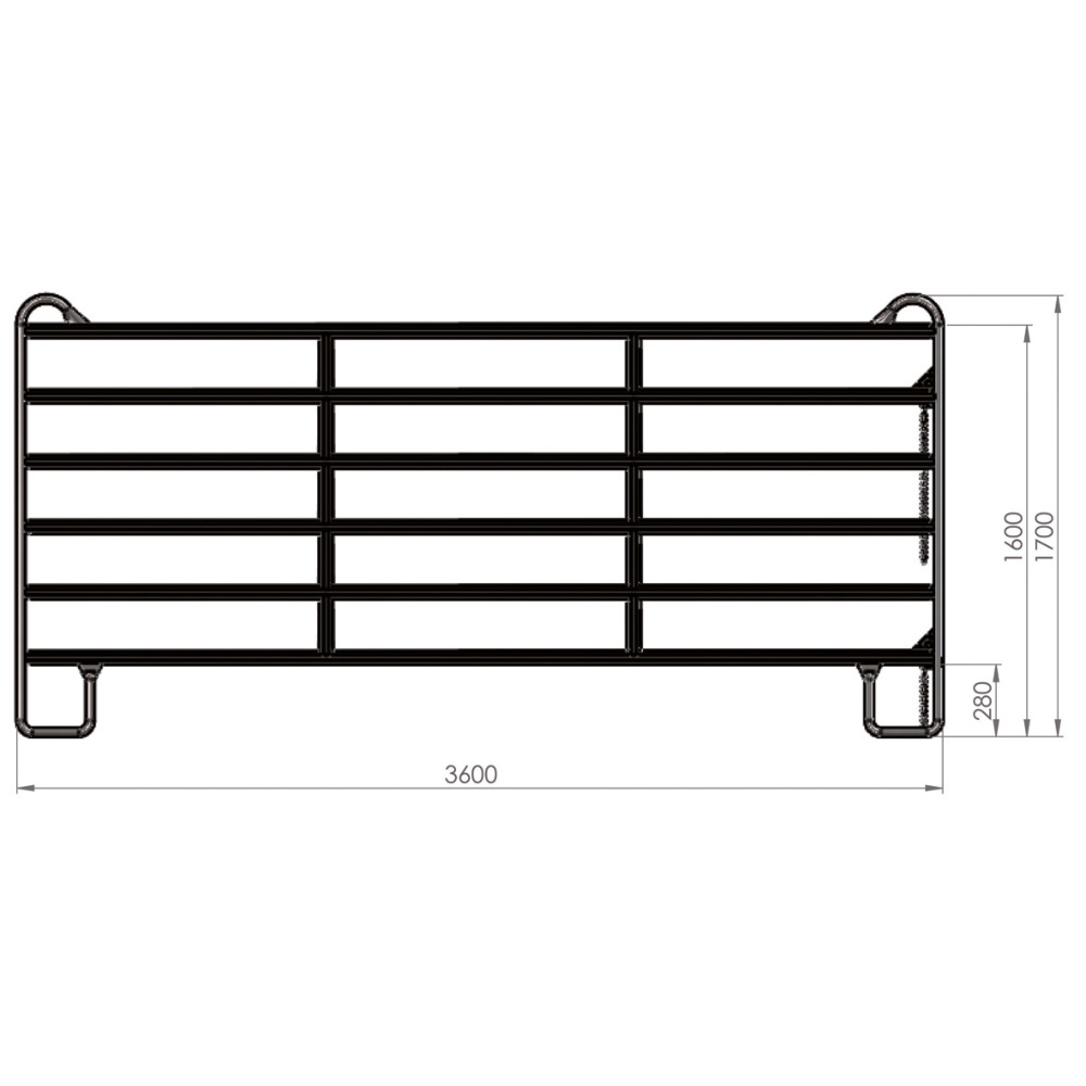 Height of the upper tube 1.60 m strong>, total height 1.70 m. Safety jump bar prevents injuries to animals. When jumping onto the panel, the animal does not get between the panels. Made of flat oval tube 50 x 30 x 1.5 mm, clear tube spacing 20 cm. Quick chain closure makes it easier and quicker to connect multiple panels. High stability with low weight, very good, secure stand thanks to the U-shaped base, completely hot-dip galvanized.