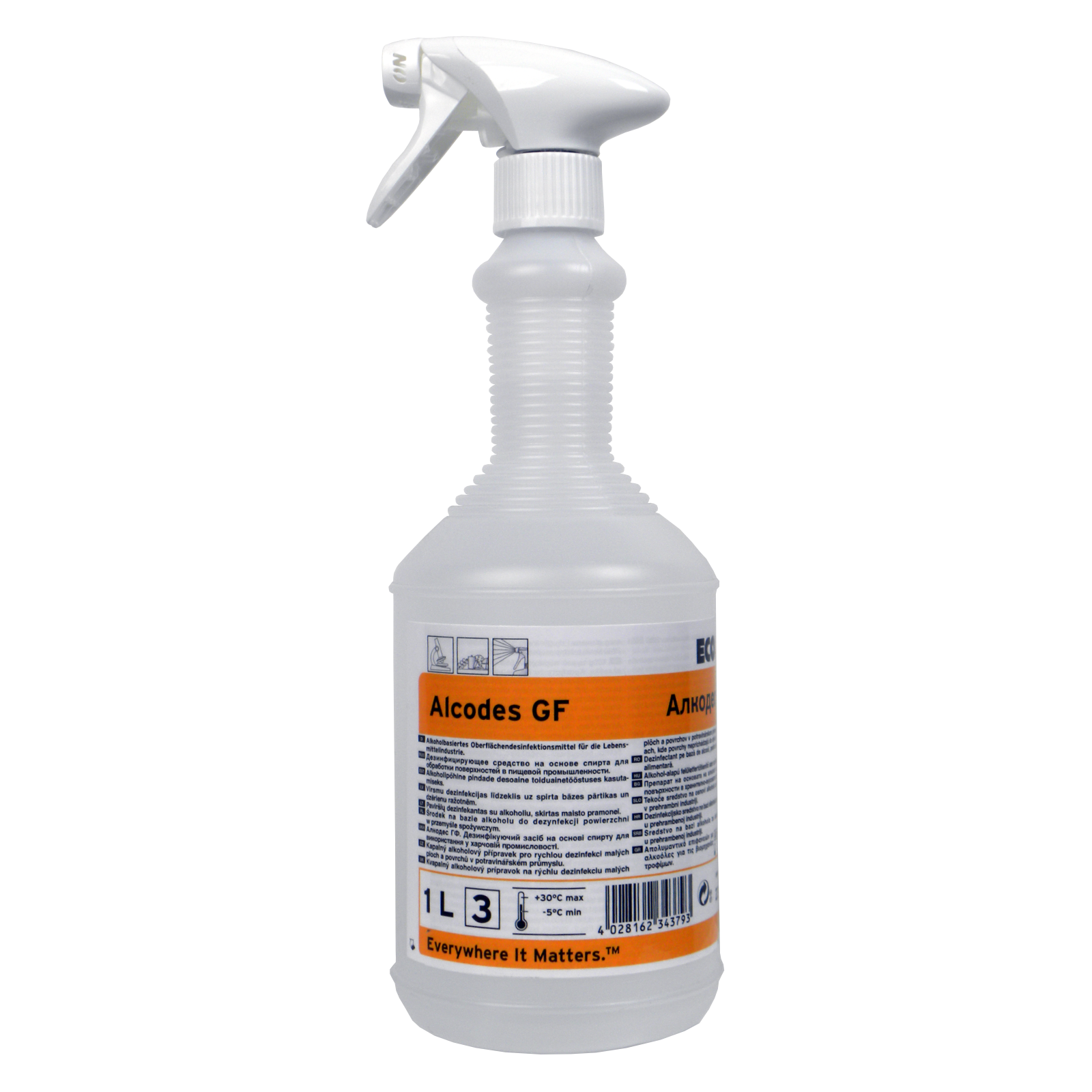 This alcohol-based surface disinfectant can be used on all surfaces and kills industry-specific harmful germs and viruses quickly and reliably. To use, simply spray the previously thoroughly cleaned surfaces and equipment (e.g. slicers and vacuum sealers) completely at a distance of approx. 30 cm. Then let the disinfectant work and dry. The clear to slightly yellowish liquid evaporates without leaving any residue.
