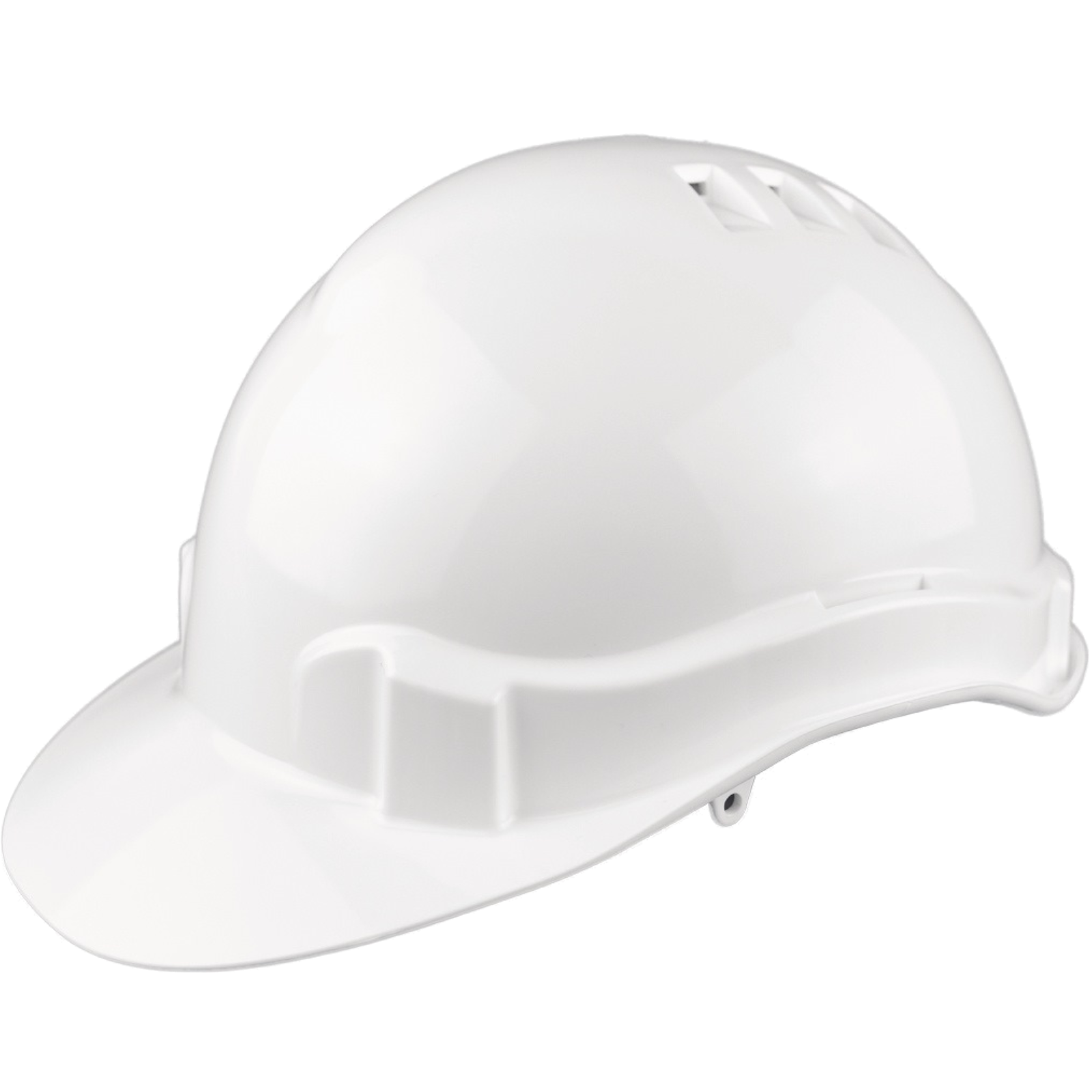 EN 397,made of polyethylene, with 6-point textile strapping, rain gutter, overhead ventilation openings (chimney effect), ~ highly tear-resistant, replaceable forehead sweatband,