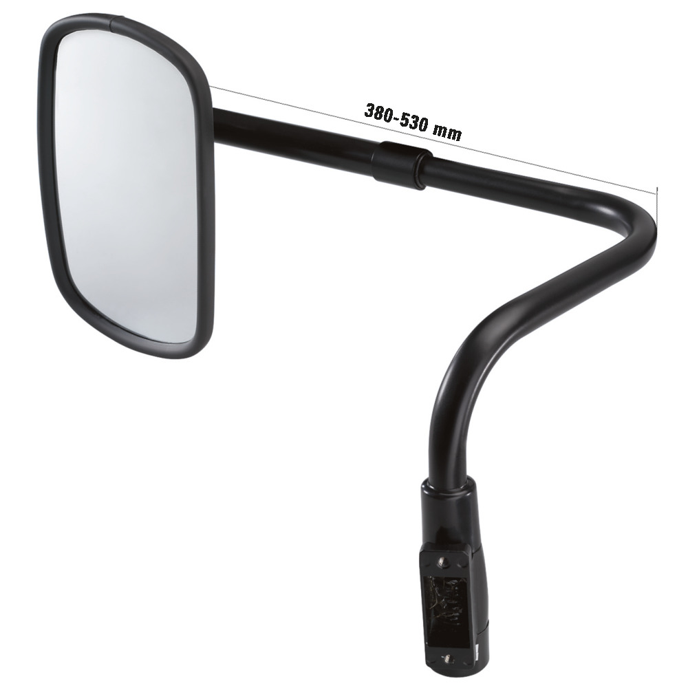 Adjustment range 380-530 mm, mirror size 270x172 mm, holding plate with 2 M6 holes, hole spacing 60 mm.