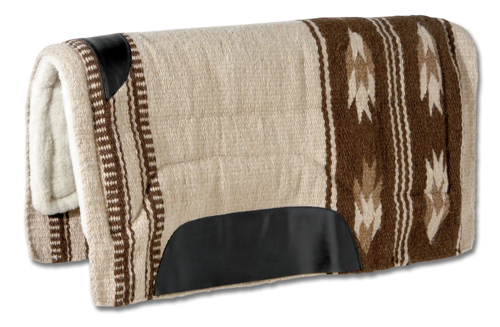 This high-quality Western saddle pad impresses with its durable wool blend and ergonomically shaped synthetic fur padding. It offers optimal comfort, protects the horse's back, and ensures even pressure distribution—ideal for everyday use.