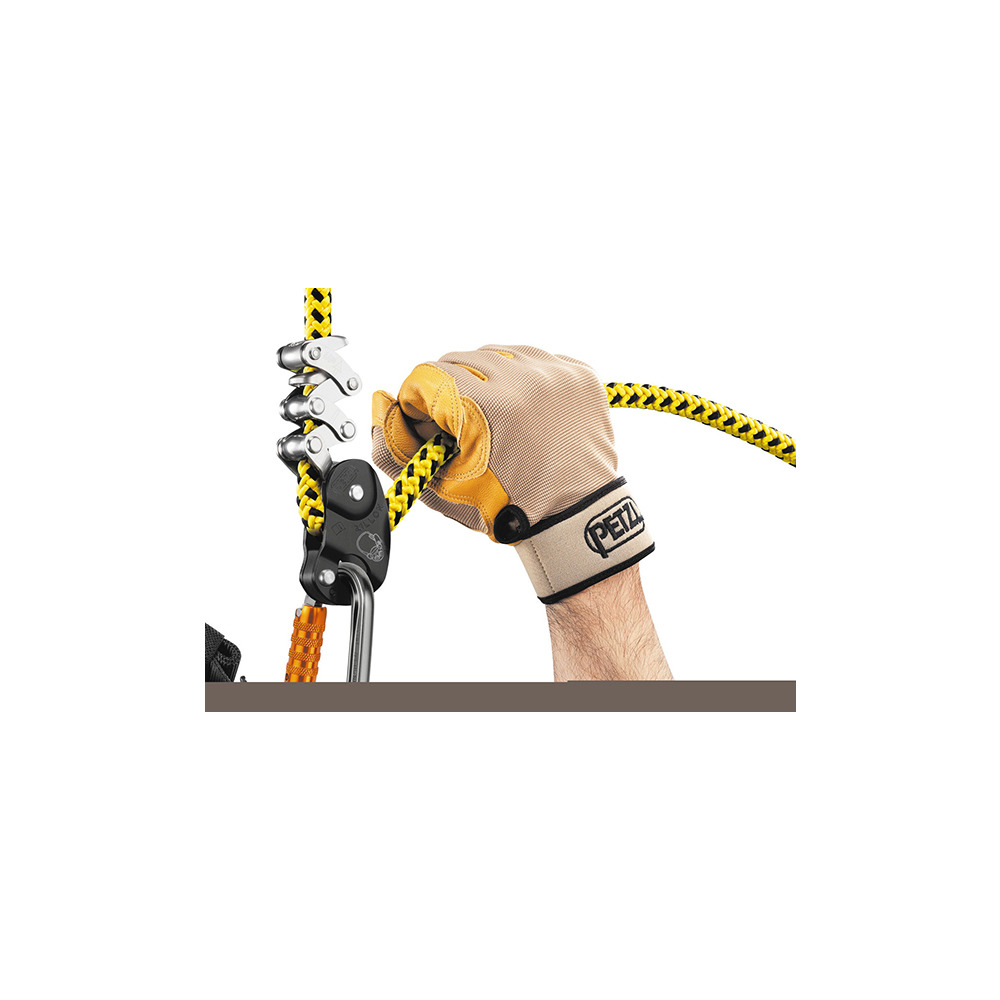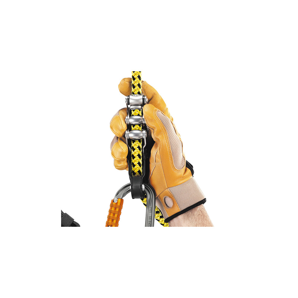 It is attached to the two side eyelets of the harness or to the ventral eyelet (the user holds the free end of the rope in his hand). The yellow color is clearly visible.