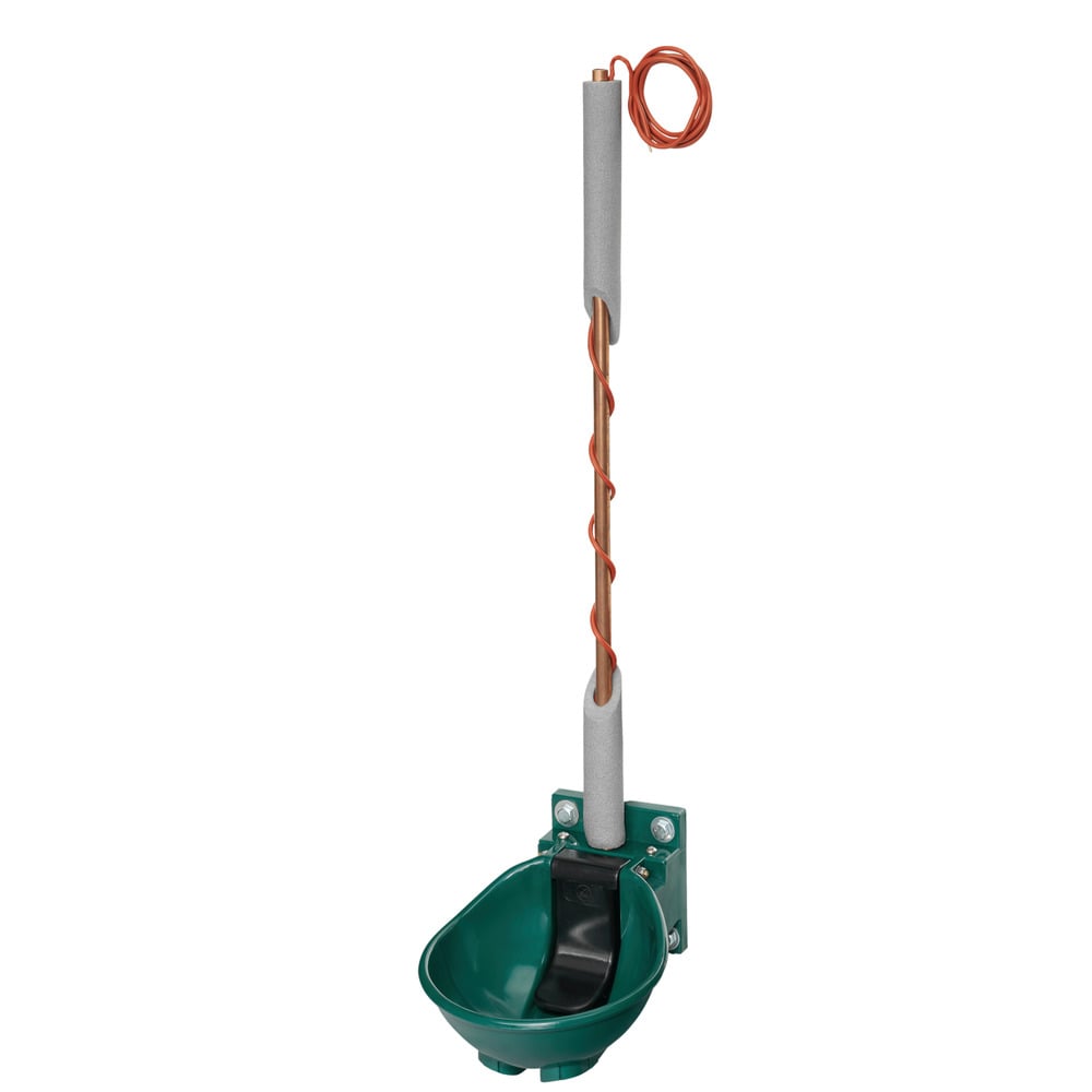 Avec câble chauffant pour conduites (RBH) pour chauffer l'abreuvoir, la vanne et jusqu'à 2 mètres de tuyau (min. 1 mètre, max. 2 mètres).