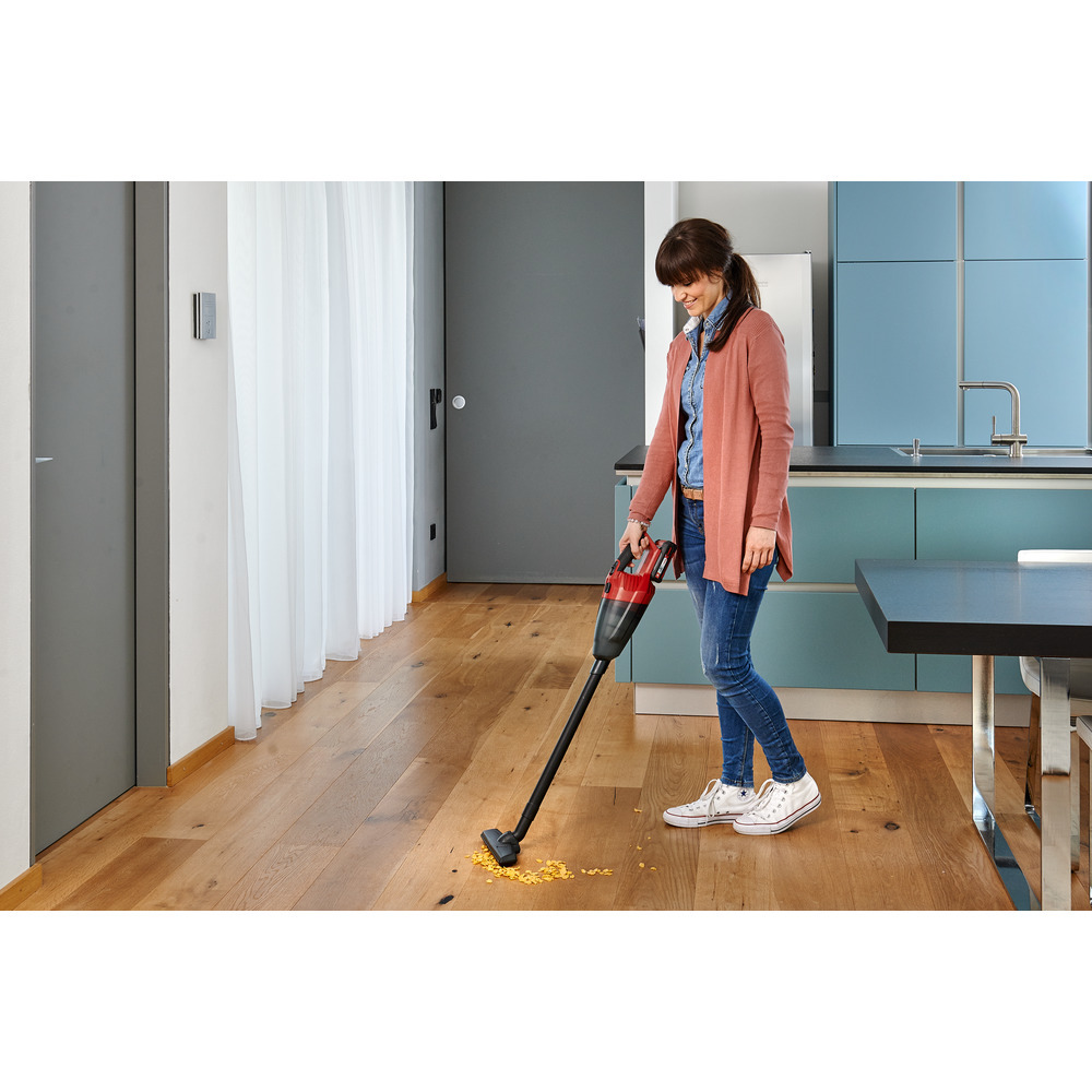 L'aspirateur à main sans fil Einhell TE -VC 18 Li solo est un bloc d'alimentation pratique de la famille Power X-Change d'Einhell. Quoi qu'il arrive dans la maison, qu'il s'agisse de miettes sur la moquette, le canapé, le parquet ou le carrelage : l'aspirateur à main sans fil s'adapte aux conditions respectives et permet de nettoyer n'importe quelle surface rapidement et en profondeur avec un embout individuel. Une brosse pour sol est particulièrement adaptée aux sols durs et aux surfaces lisses. Une deuxième buse est conçue pour les tissus d'ameublement et les tissus. Le bac à poussière a une capacité de 540 millilitres.