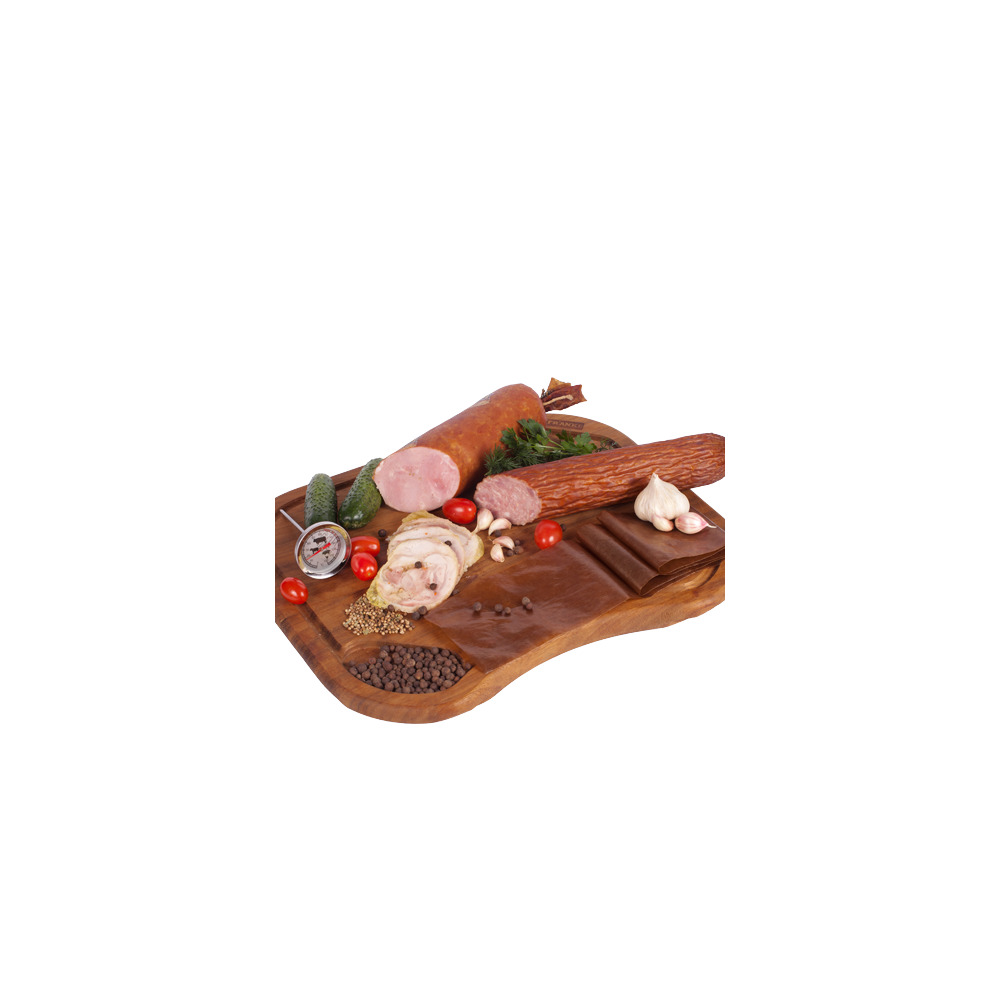 Enveloppe protéinée de couleur caramel pour brûler (jusqu'à +75°C) et fumer (jusqu'à +90°C) des produits de charcuterie.