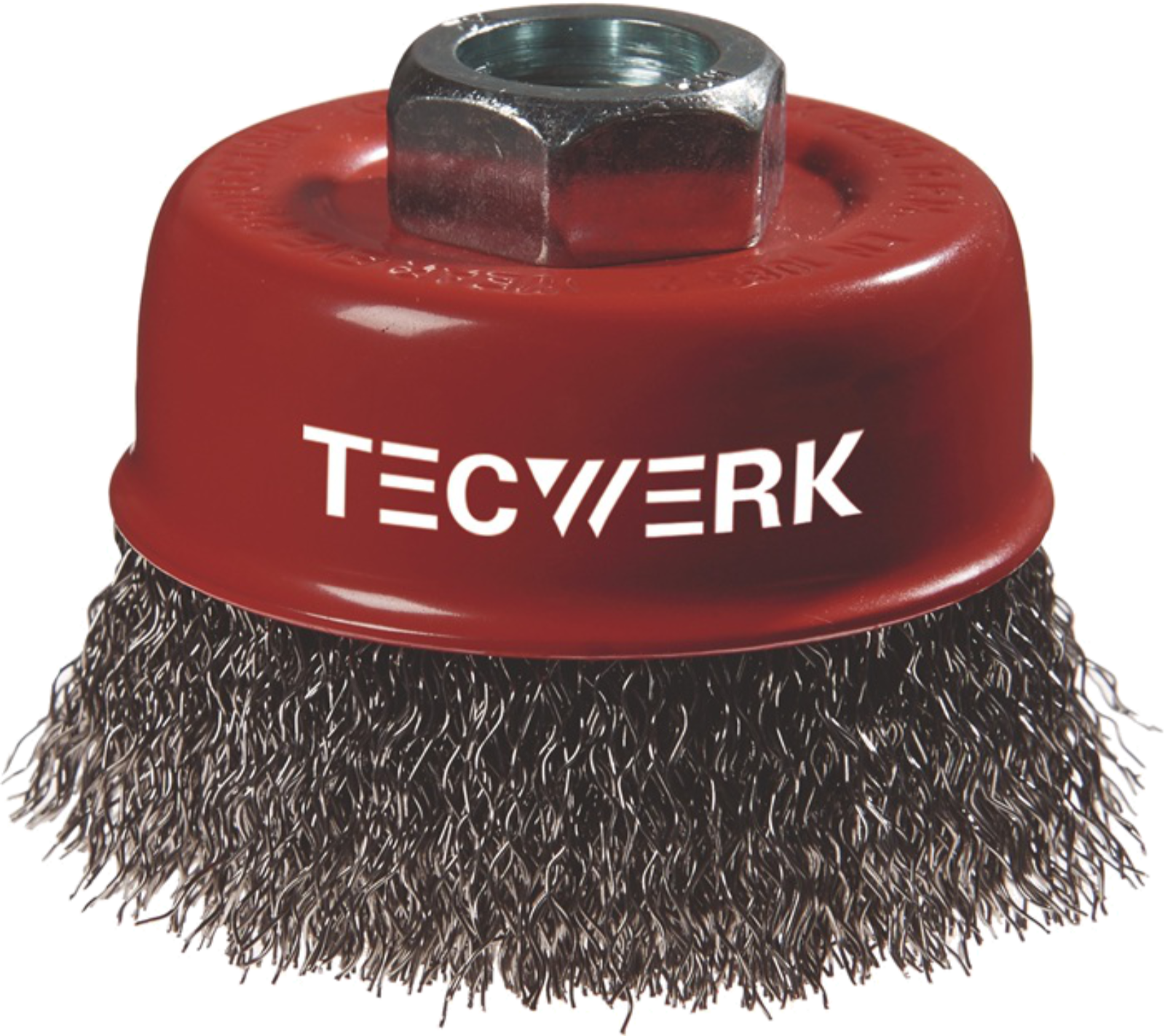 Avec fil ondulé · Brosse pour travaux de nettoyage légers à moyens, pour le traitement de grandes surfaces ·M14 ·Épaisseur du fil 0,3 mm. Adéquation des matériaux< /strong>:< br>Aluminium : partiellement adapté Fonte : très adapté Bois : partiellement adapté Plastique : partiellement adapté Acier : très adapté