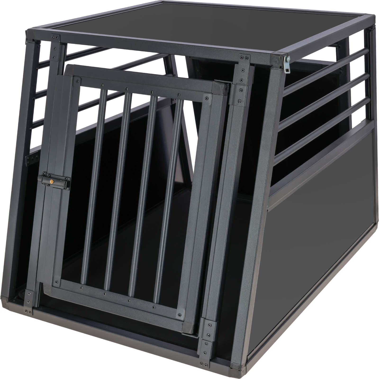 Le box de transport robuste à une porte a été spécialement conçu pour le coffre et vous permet de transporter votre animal préféré en voiture de manière sûre et simple.box de transport stable et sûr pour la voiture en aluminium