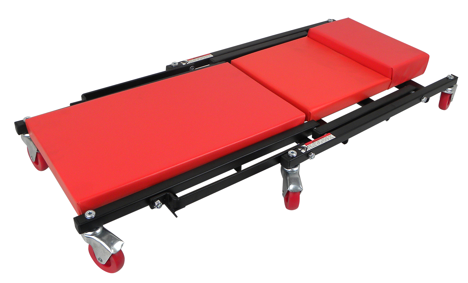 Chariot de montage pratique avec plan de couchage rembourré 1030x415x160 mm. Roulement facile grâce à 6 roues. D'un seul geste, la couchette devient un tabouret de travail pratique. Poids seulement 11,8 kg.