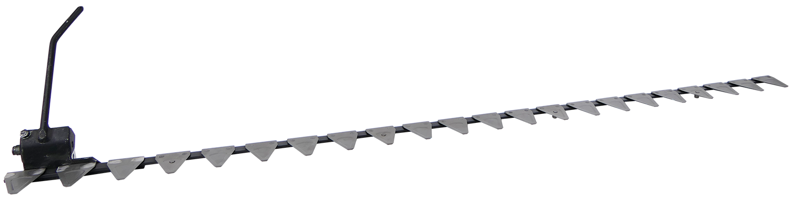 Lame inférieure pour le double guide-couteau Busatis avec un nombre total de 22 lames. Parmi celles-ci, 4 lames sont dotées d'un bouton permettant de maintenir les bras de guidage des couteaux. Le pas des lames, du centre de la lame au centre de la lame, est de 76 mm. La lame est livrée complète avec la tête de lame inférieure rivetée, du côté droit dans le sens de la marche. Convient aux motofaucheuses Moty Gigant avec faucheuse à double lame Busatis.