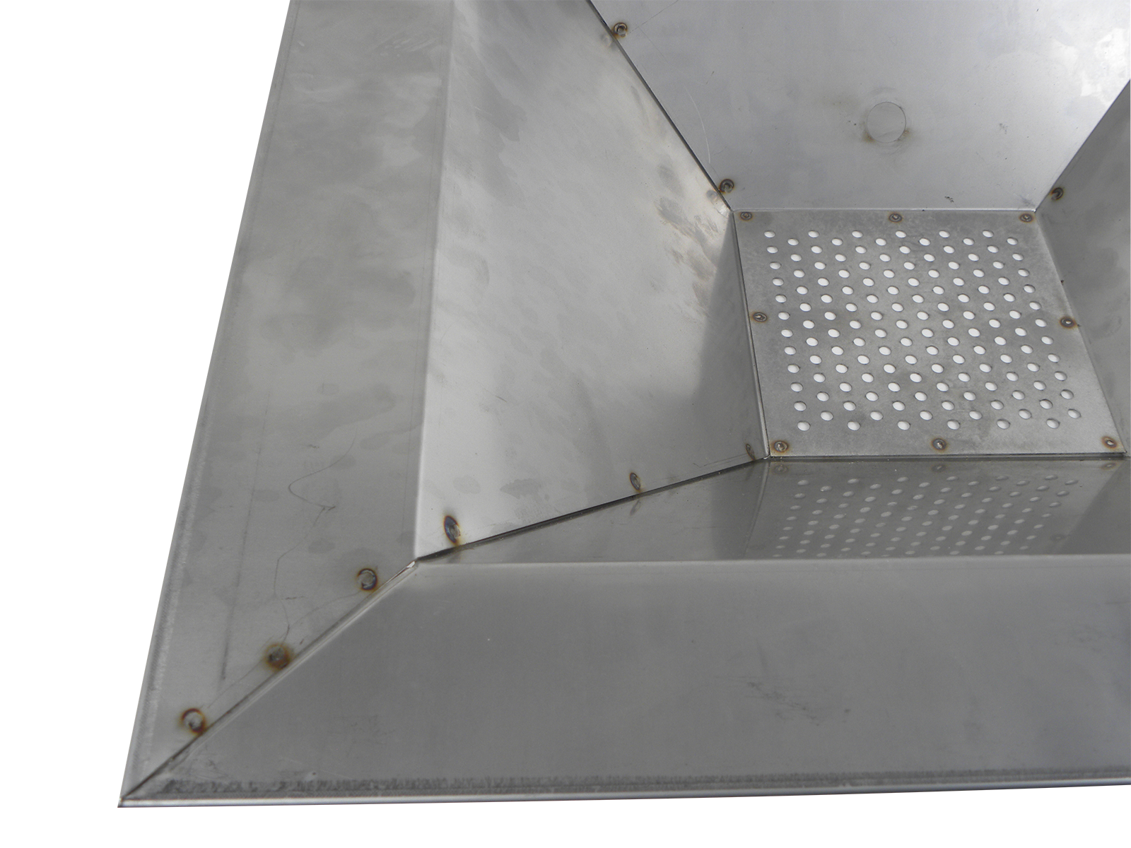 Dimensions extérieures : 50 x 50 cm Largeur du bord : 6 cm Dimensions intérieures : 38 x 38 cm sur 14 x 14 cm Hauteur : 12,5 cm< br>Diamètre du trou de raccordement pour générateur de vapeur : 18 mm env. Tôle d'acier inoxydable de 0,7 mm, soudée par points Article fonctionnel, surface non traitée ni tachée. Le raccord assure un maintien ferme du tuyau de vapeur sur l'entonnoir de fusion de cire.