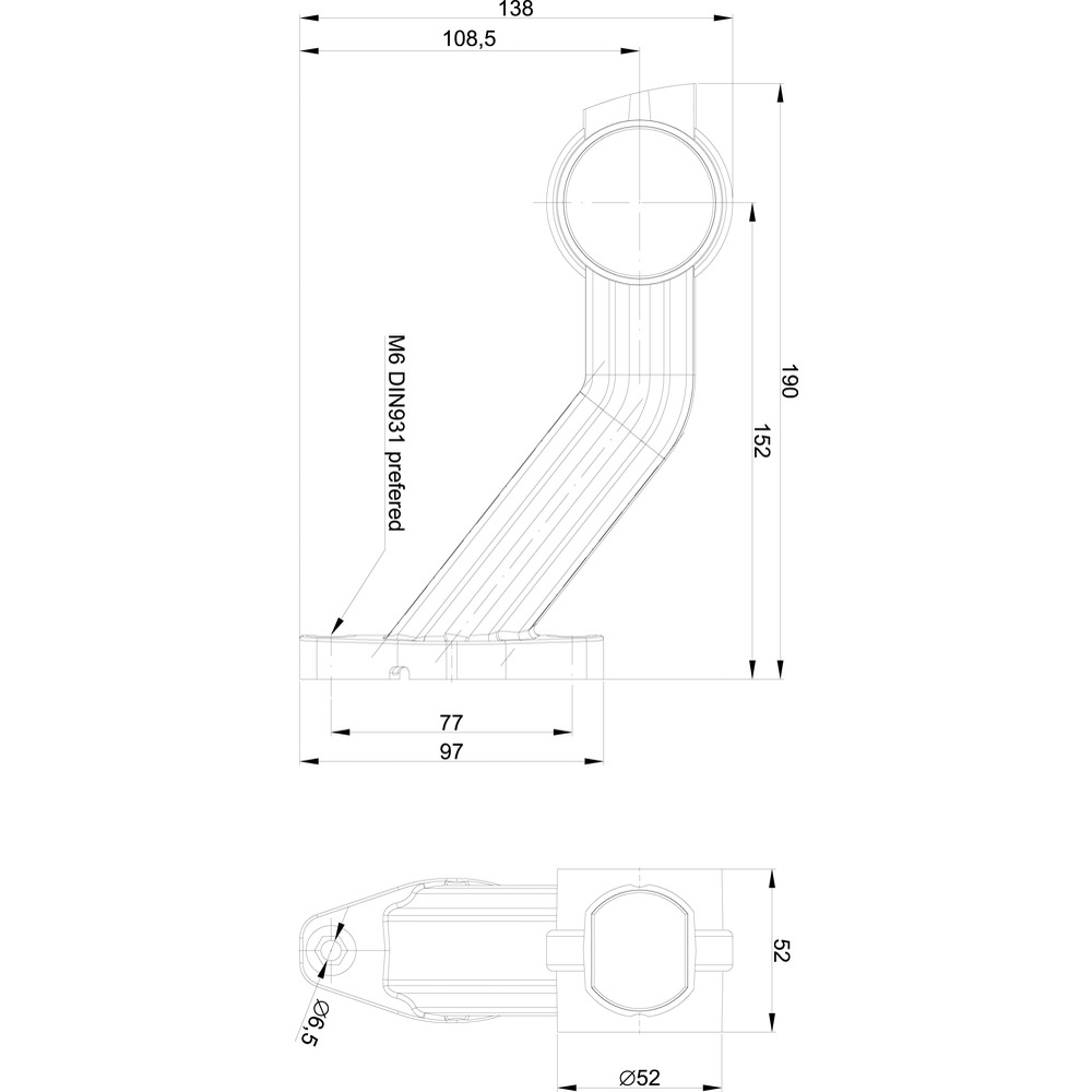 Dimensions LxHxP : 52x138x190mm, 2 trous 6,5mm espacement des trous 77mm