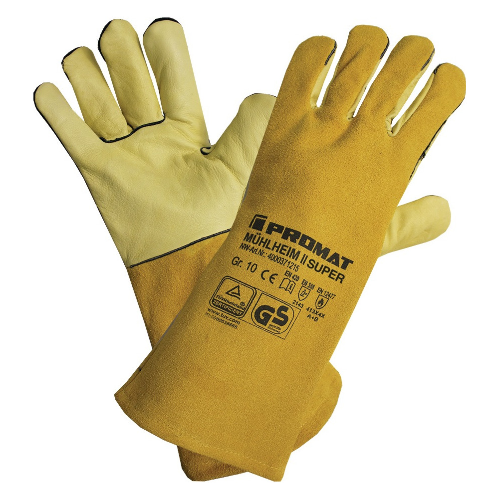 Informations sur le produit "Gants de soudage Mühlheim II Super taille 10 fleur de vache jaune/croûte de cuir EN 388, EN 12477 catégorie II"