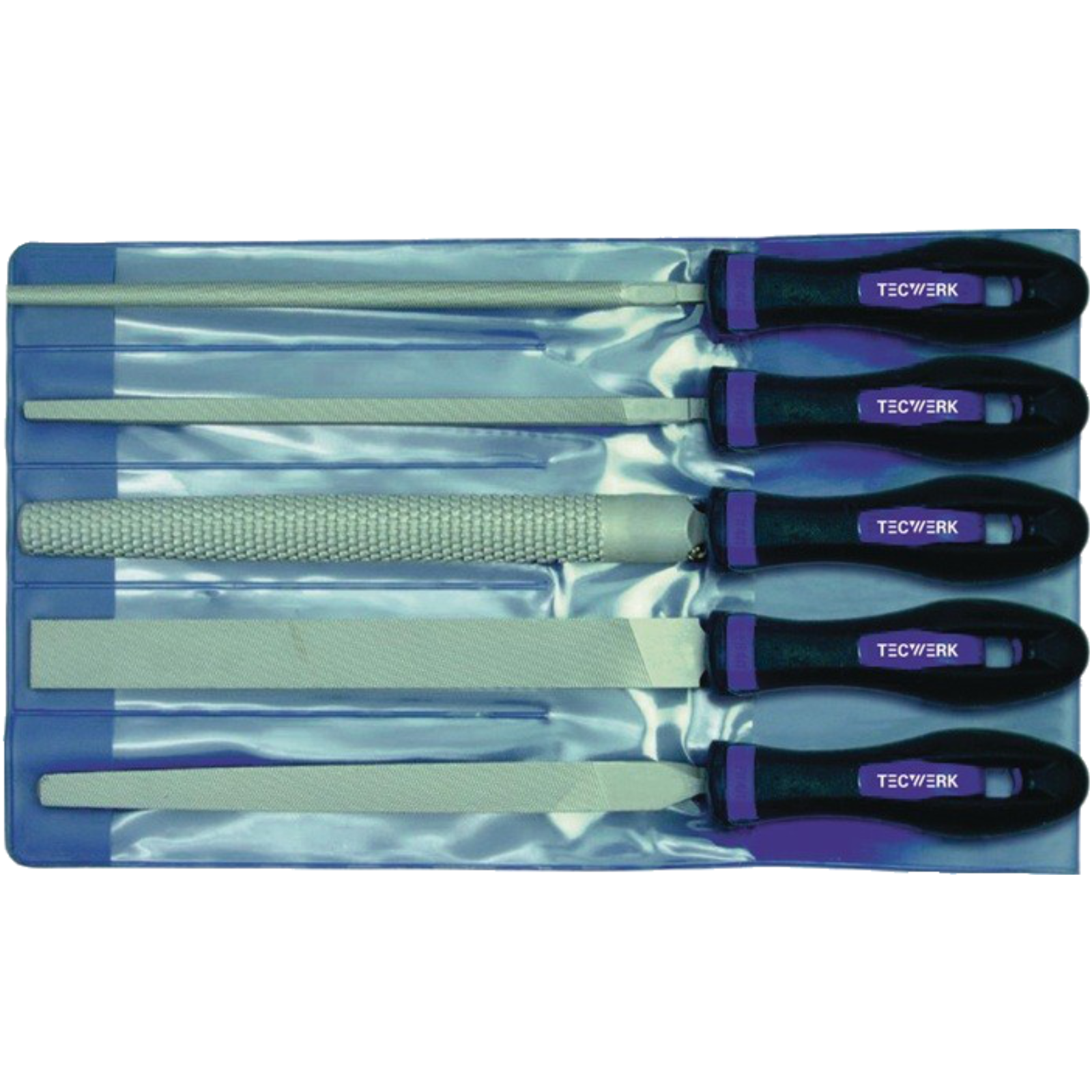 Limes d'une longueur de 200 mm en acier de haute qualité, dans un sachet en plastique · Contenu : 1 de chaque lime plate émoussée, demi-ronde, ronde, triangulaire et une râpe demi-ronde. Le tout équipé d'une lime haute -Manche 2 composants de qualité.