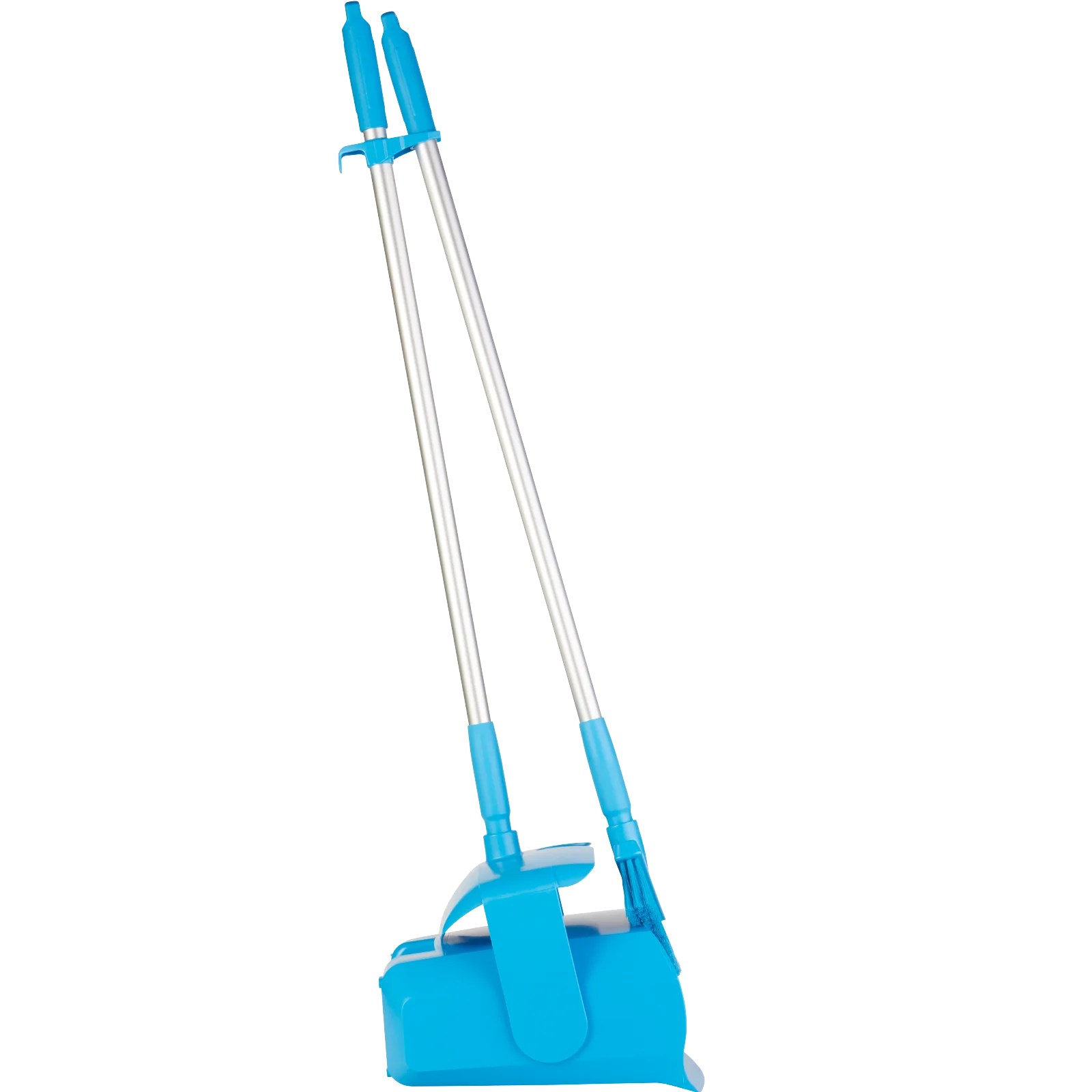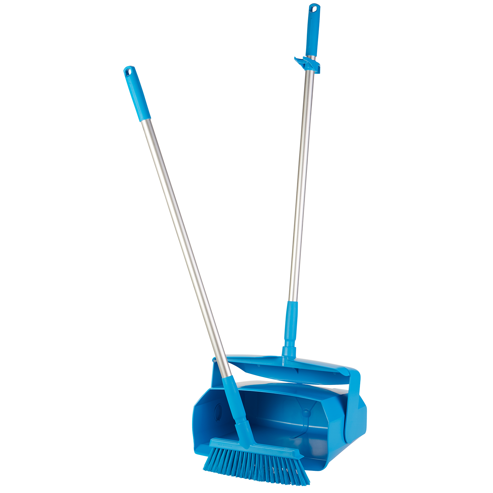 Kit de balayage de qualité alimentaire pour saletés sèches et humides. Matière plastique : polypropylène (PP). Poignées en aluminium robuste (longueur 840 mm). Le balai de 250 mm de large est équipé de 2 poils différents et permet un balayage facile grâce à la coupe en angle. La pelle verrouillable (370 mm de large) est dotée d'une lèvre de contact solide pour ramasser la saleté facilement et efficacement.