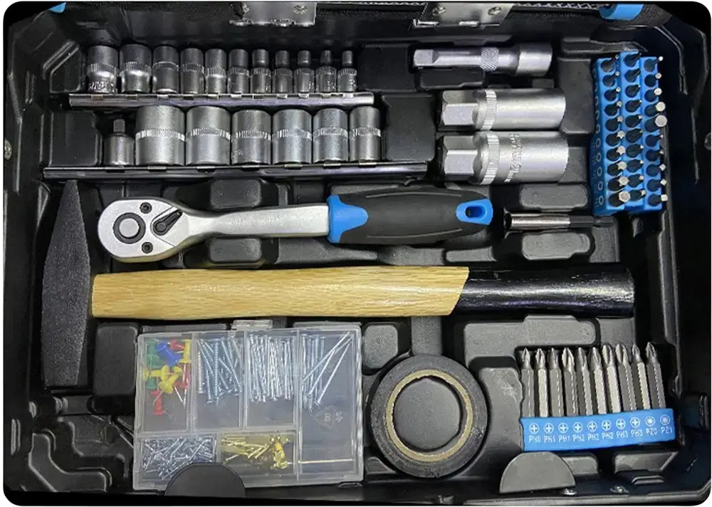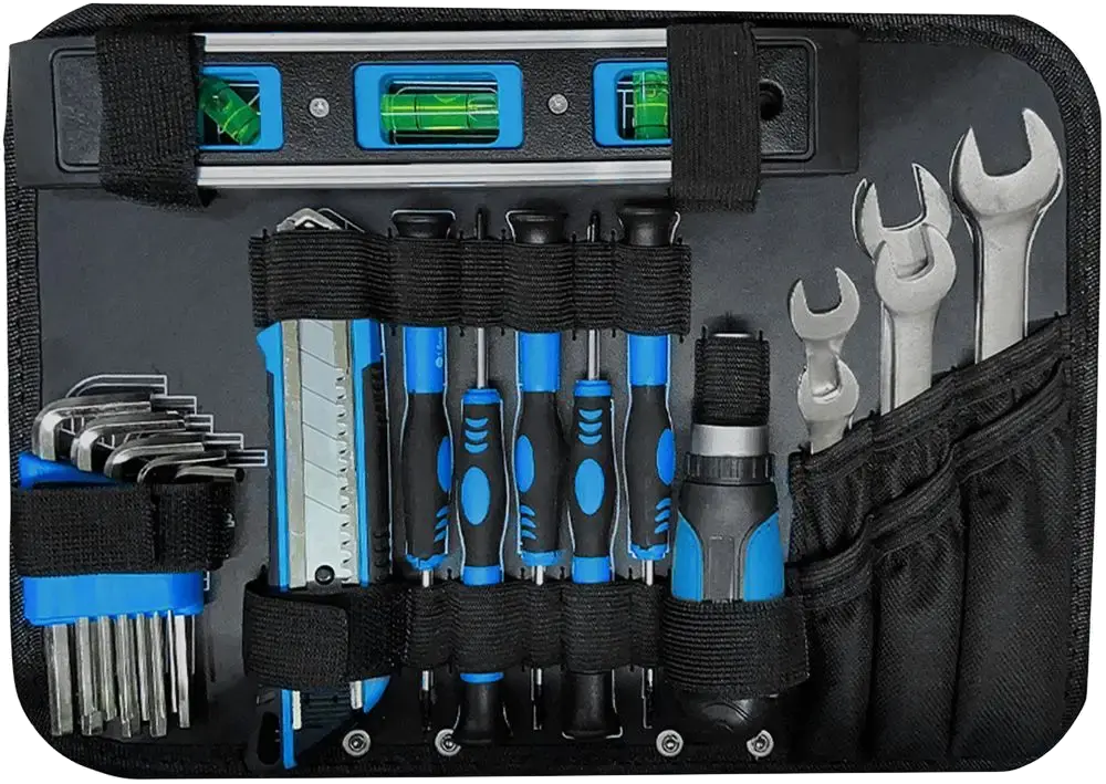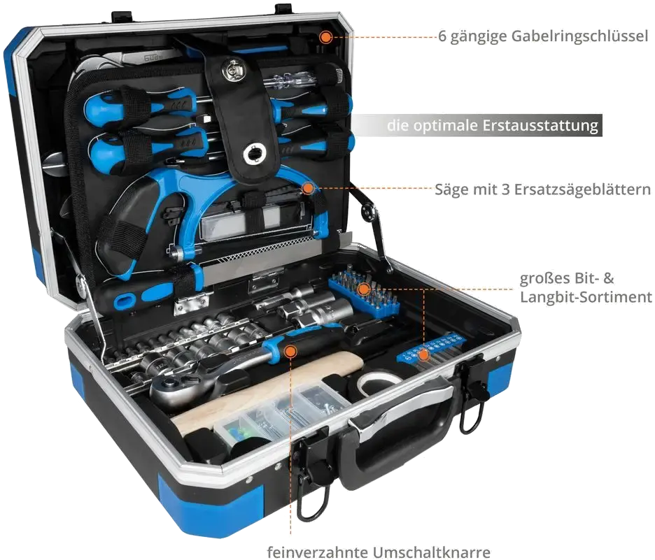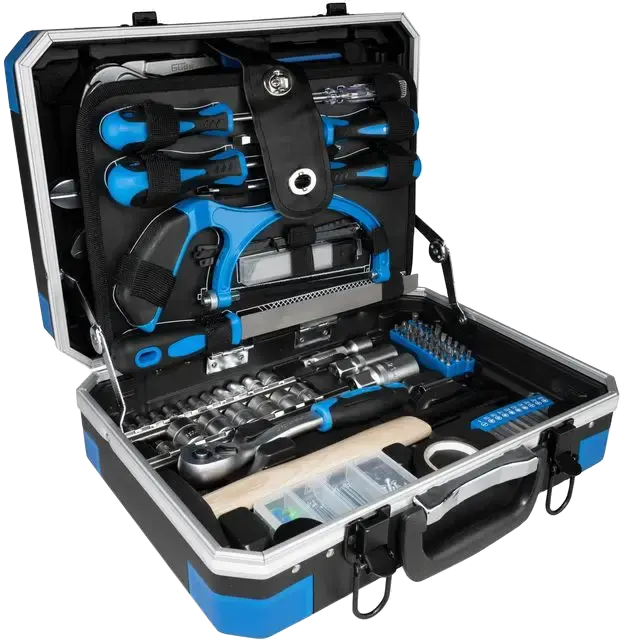 Une mallette à outils pratique qui contient l'équipement de base ou initial parfait.