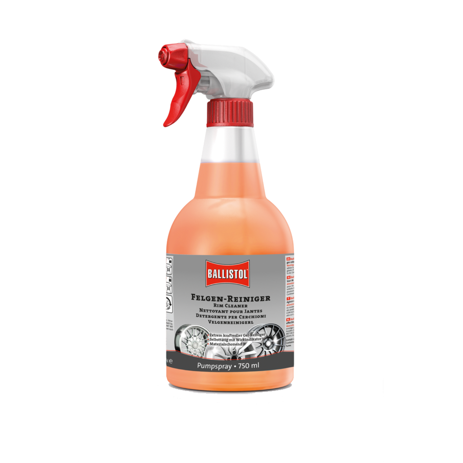 Le nettoyant pour jantes Ballistol est un gel nettoyant extrêmement puissant avec un indicateur d'efficacité. Cela signifie qu'un changement de couleur se produit à mesure que la puissance efficace augmente (le nettoyant devient violet). Élimine de manière très efficace et automatique les saletés tenaces telles que l'abrasion des freins, les résidus d'huile et de caoutchouc. S'il est utilisé régulièrement, il peut être dilué pour les salissures légères. Convient également pour TPMS (système de surveillance de la pression des pneus).