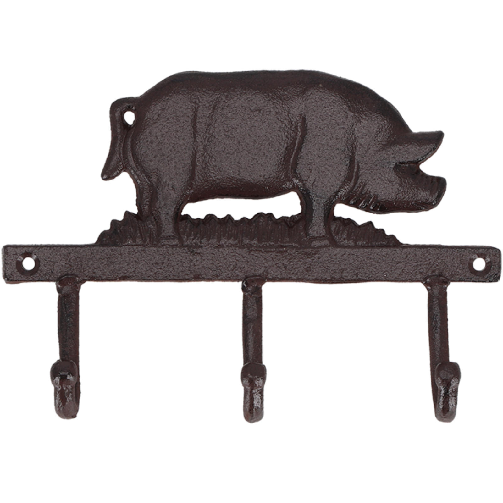 Patère triple en fonte en forme de cochon – Pratique et décorative