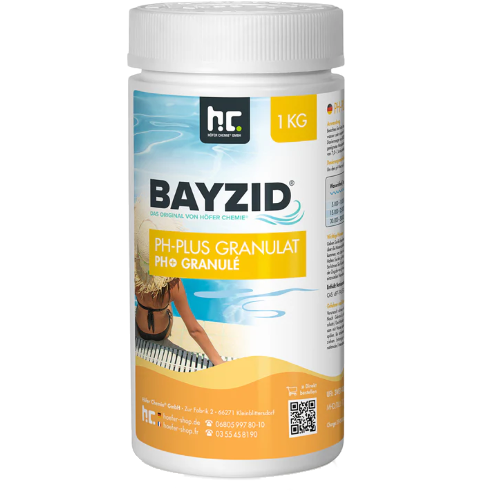 Les granulés pH Plus en boîtes pratiques de 1 kg conviennent parfaitement pour augmenter le pH de votre eau de piscine.