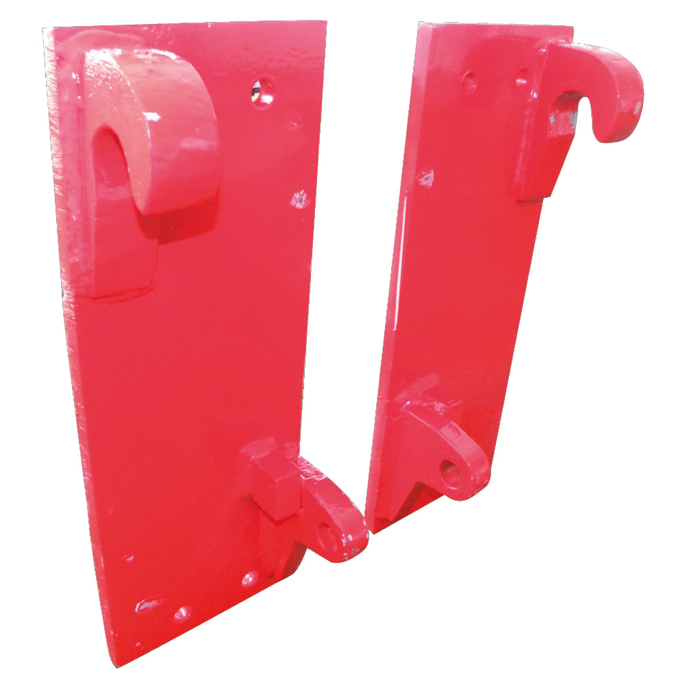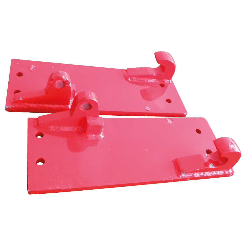 plaques droites, chacune avec 4 trous de 17 mm, à visser ou à souder sur toutes les fixations. Dimensions : trous 420 x 70 mm, plaque épaisseur 16 mm, 490 x 185 mm, livrés par paire.