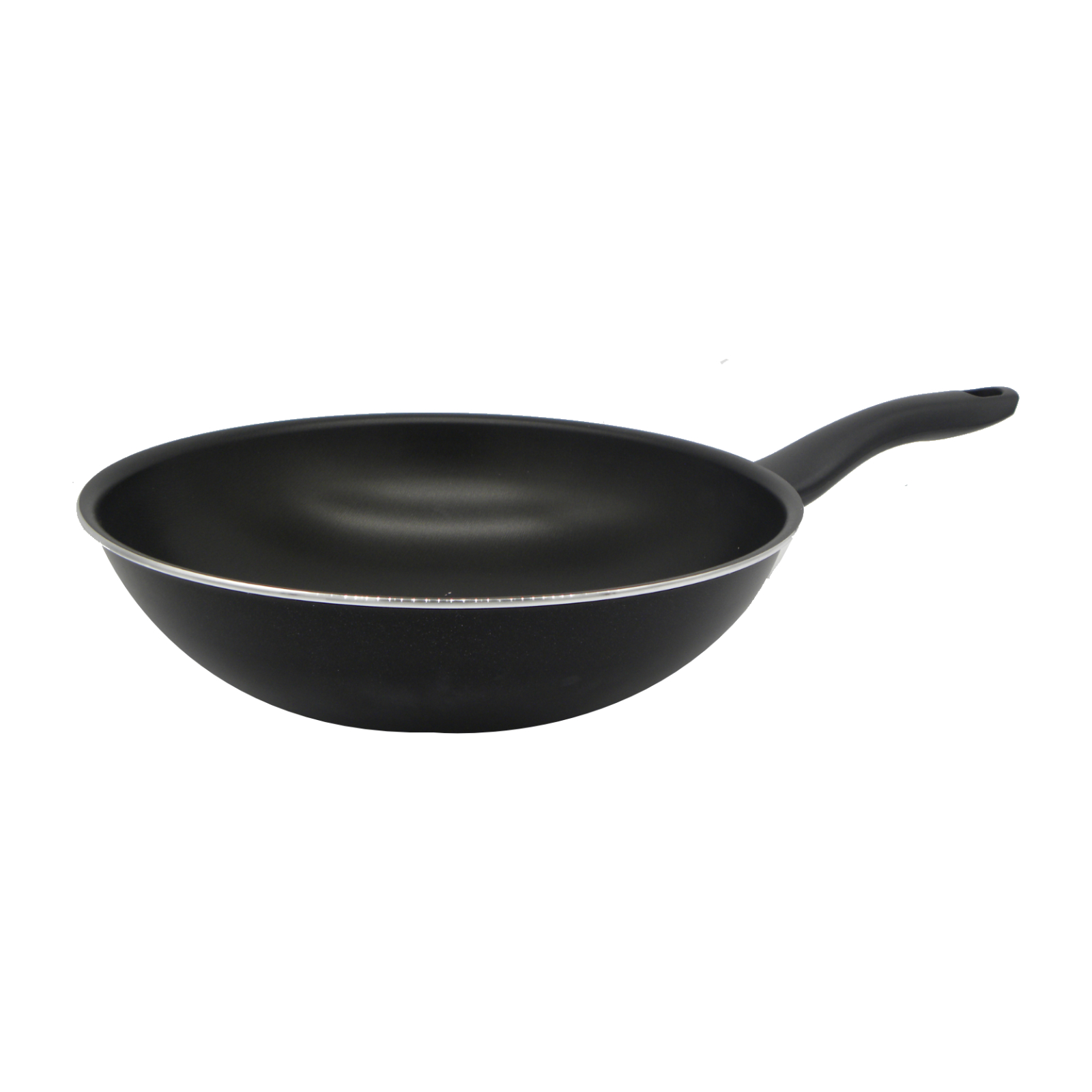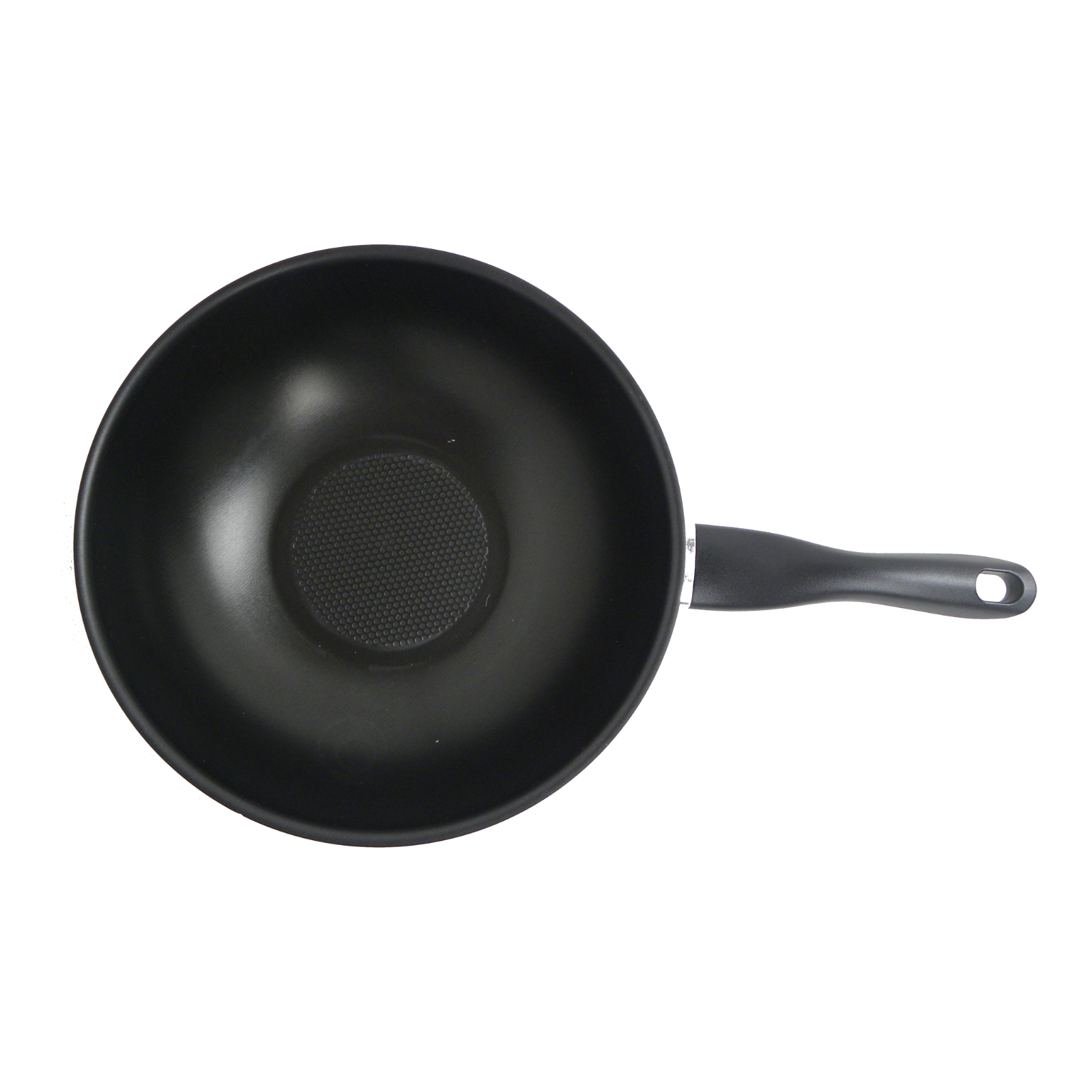 Poêle wok antiadhésive de haute qualité. Convient à tous types de feux, y compris l'induction. Dimensions Ø 28cm Hauteur : 8cm.