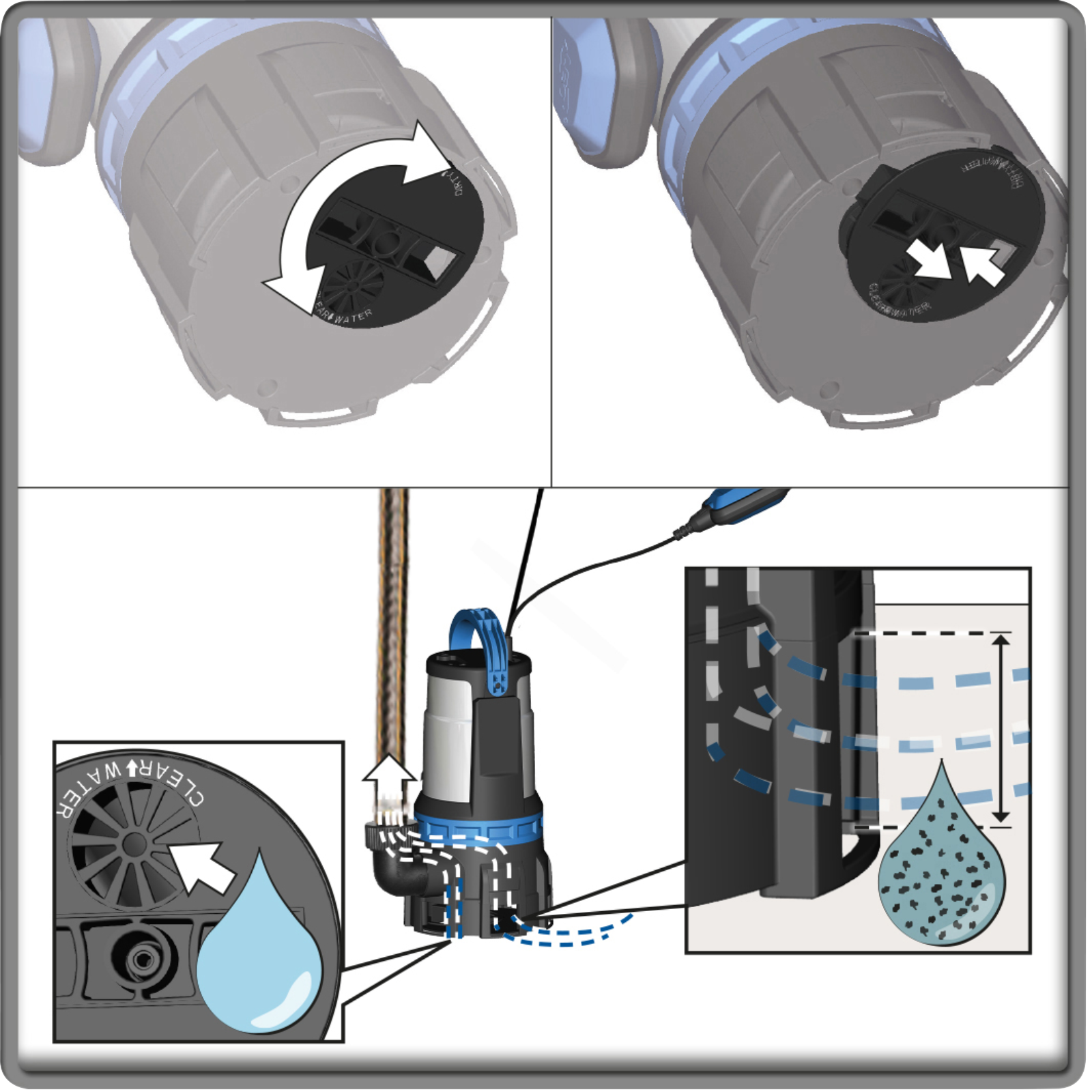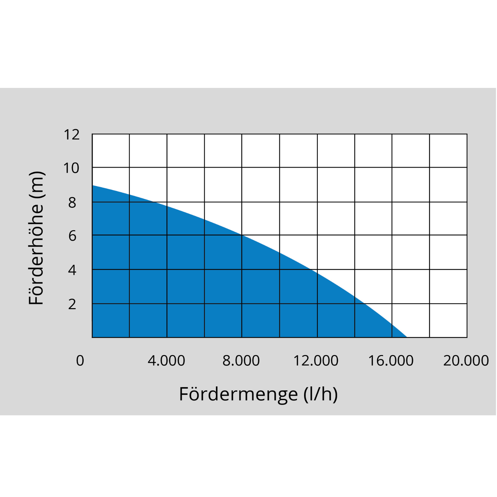Idéale pour le drainage des bassins de jardin, des piscines ou des zones inondées. Pompe 2 en 1 pour le pompage des eaux usées jusqu'à une granulométrie de 35 mm et le passage à l'eau claire d'une seule main (ne convient pas pour un fonctionnement continu). Débit de 16 500 l/h, hauteur de refoulement de 9 m (0,9 bar). Une pompe pour tous les besoins.