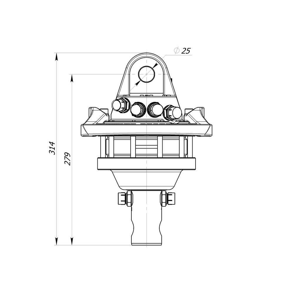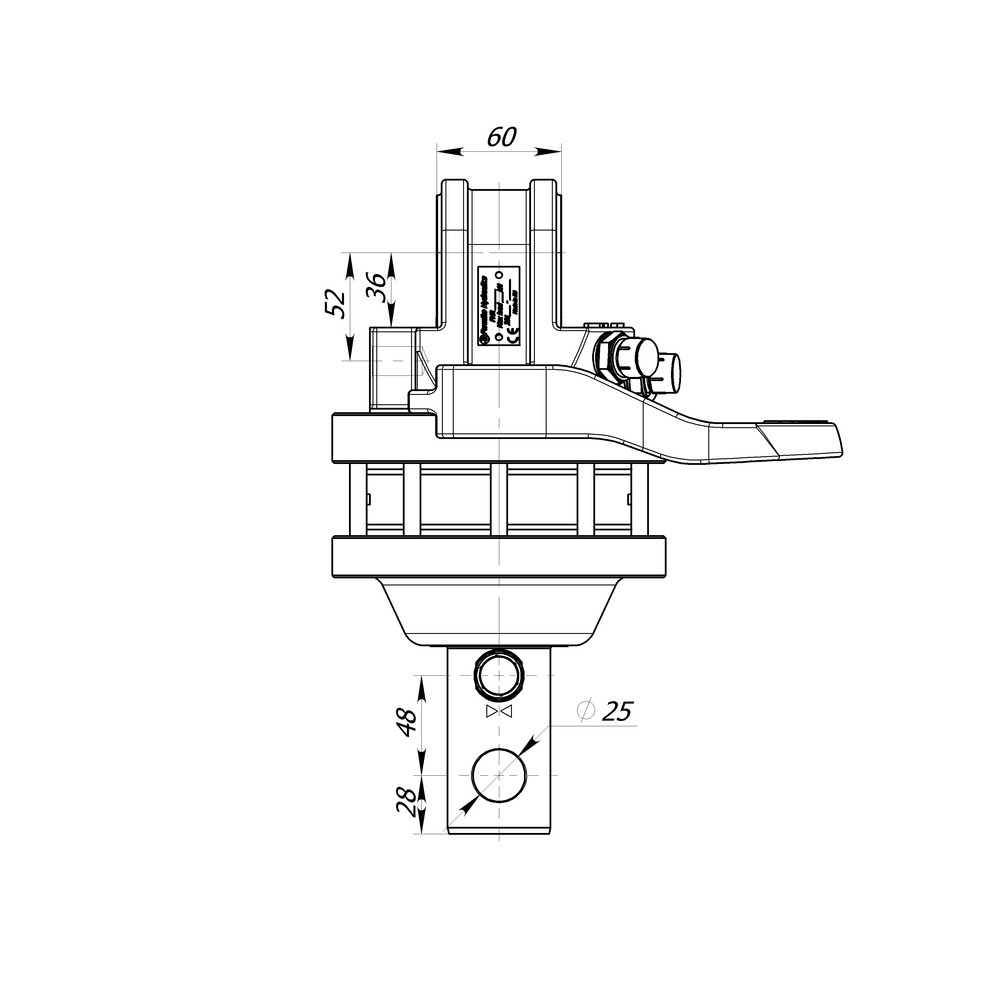 avec arbre de 49,5 mm et alésage de 25 mm, charge axillaire maximale 3,0 tonnes (statique), 900 Nm à 250 bar max., 300 bar max pour la fermeture des pinces, 200 max. barre pour ouverture de la pince, débit d'huile requis 20 litres/min., raccord 3/8", poids 20 kg.