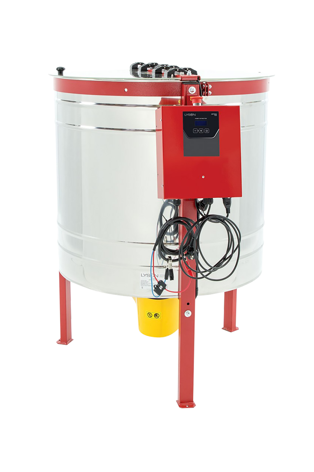 Extracteur de miel entièrement automatique pour apiculteurs débutants et avancés avec 7 programmes automatiques prédéfinis. Le lance-pierre offre de la place pour 6 images. Selon la taille des cadres, il existe des cassettes de différentes tailles. Il offre la possibilité de travailler en mode manuel et automatique. Le fonctionnement sur batterie (12 V) permet d'extraire le miel partout où il n'y a pas d'accès au réseau 230 volts. Le tambour est en acier inoxydable résistant aux acides. Le panier est composé de tiges inoxydables et résistantes aux acides et est équipé de cassettes. Les cassettes sont reliées entre elles par des guides et ressorts spéciaux qui leur permettent de revenir à la position de départ. Le verrou de sécurité fixé au couvercle de l'extracteur de miel empêche l'extracteur de fonctionner si le couvercle est ouvert pendant l'extracteur. Le design transparent permet d'observer le processus d'essorage sans l'ouvrir.