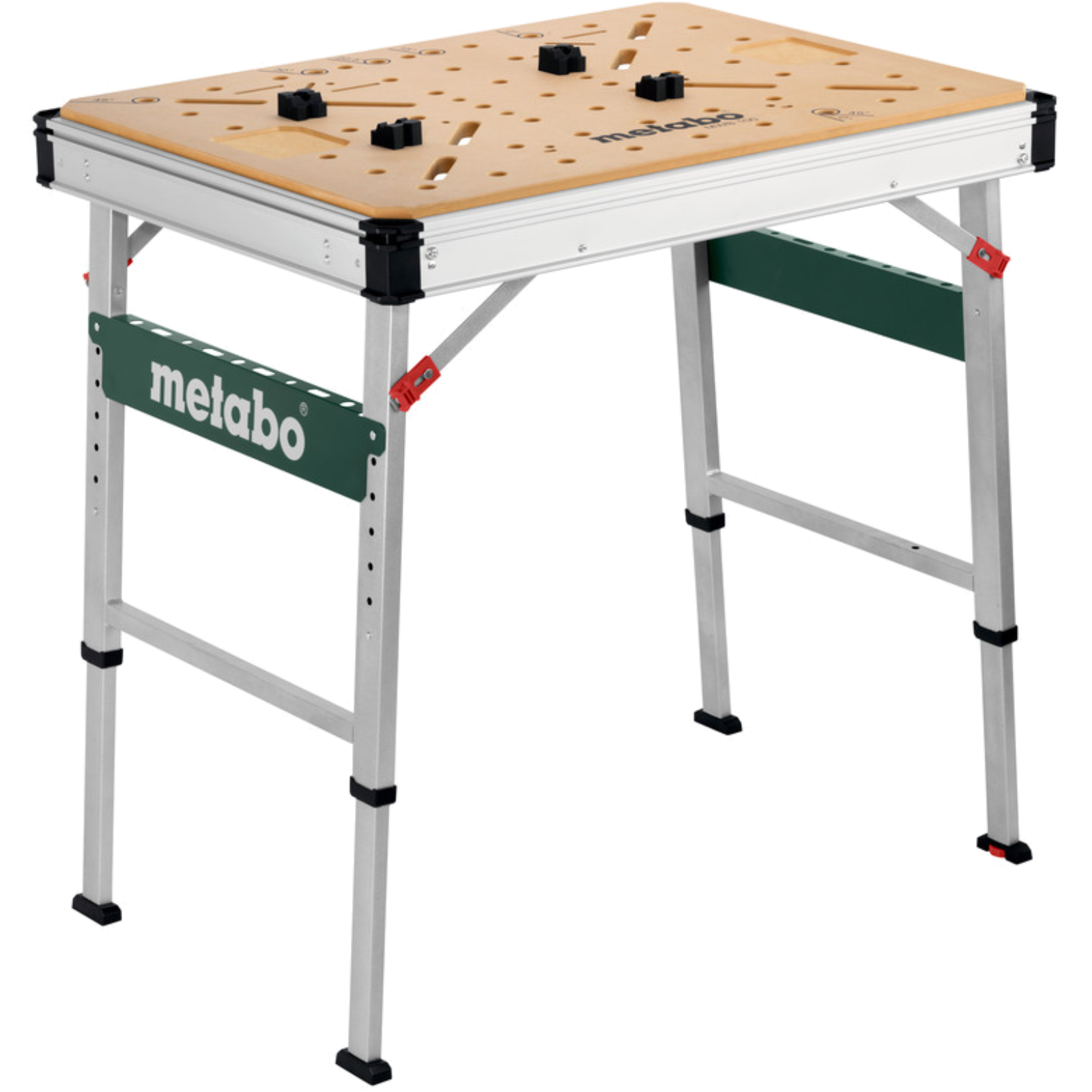 Facile à transporter (22 kg seulement), capacité de charge de 120 kg, plateau en MDF de 960 x 710 x 20 mm avec des trous d'arrêt de 20 mm.