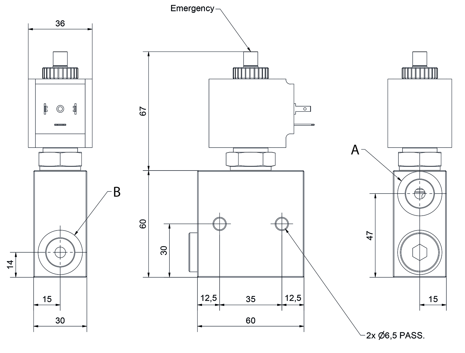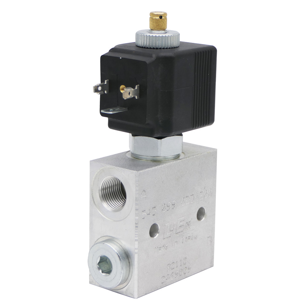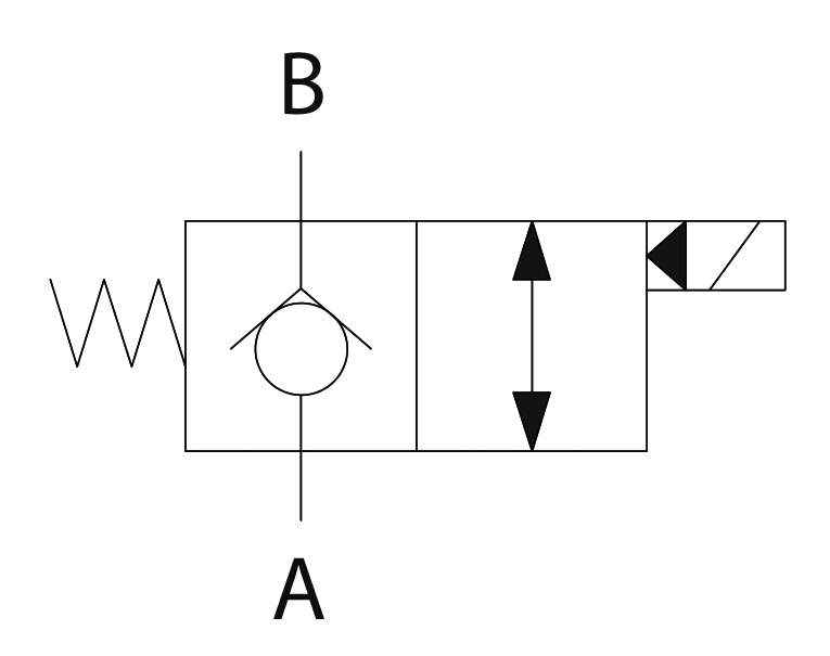 Avec clapet anti-retour et vis de vidange d'urgence. Peut être utilisé comme robinet d'arrêt électromagnétique, comme ouvreur ou ferme-porte pour des commandes hydrauliques simples. Cycle de service 100%.