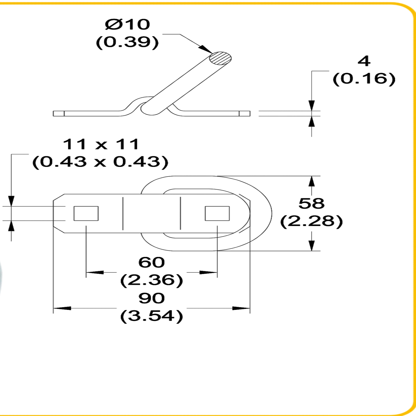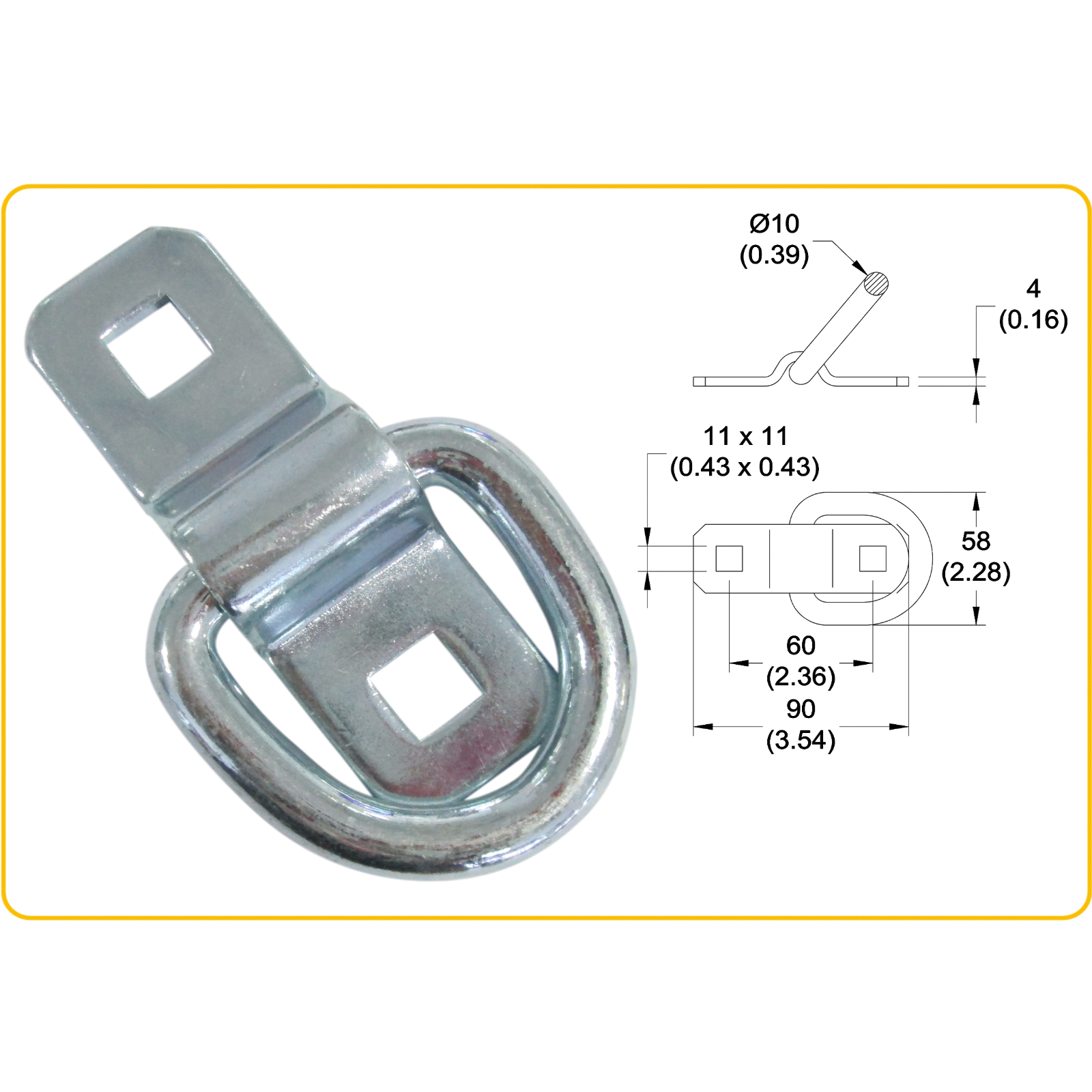 carico di trazione ammissibile 1135 kg, staffa di montaggio 90 x 30 mm, foro quadrato 11 mm, zincato
